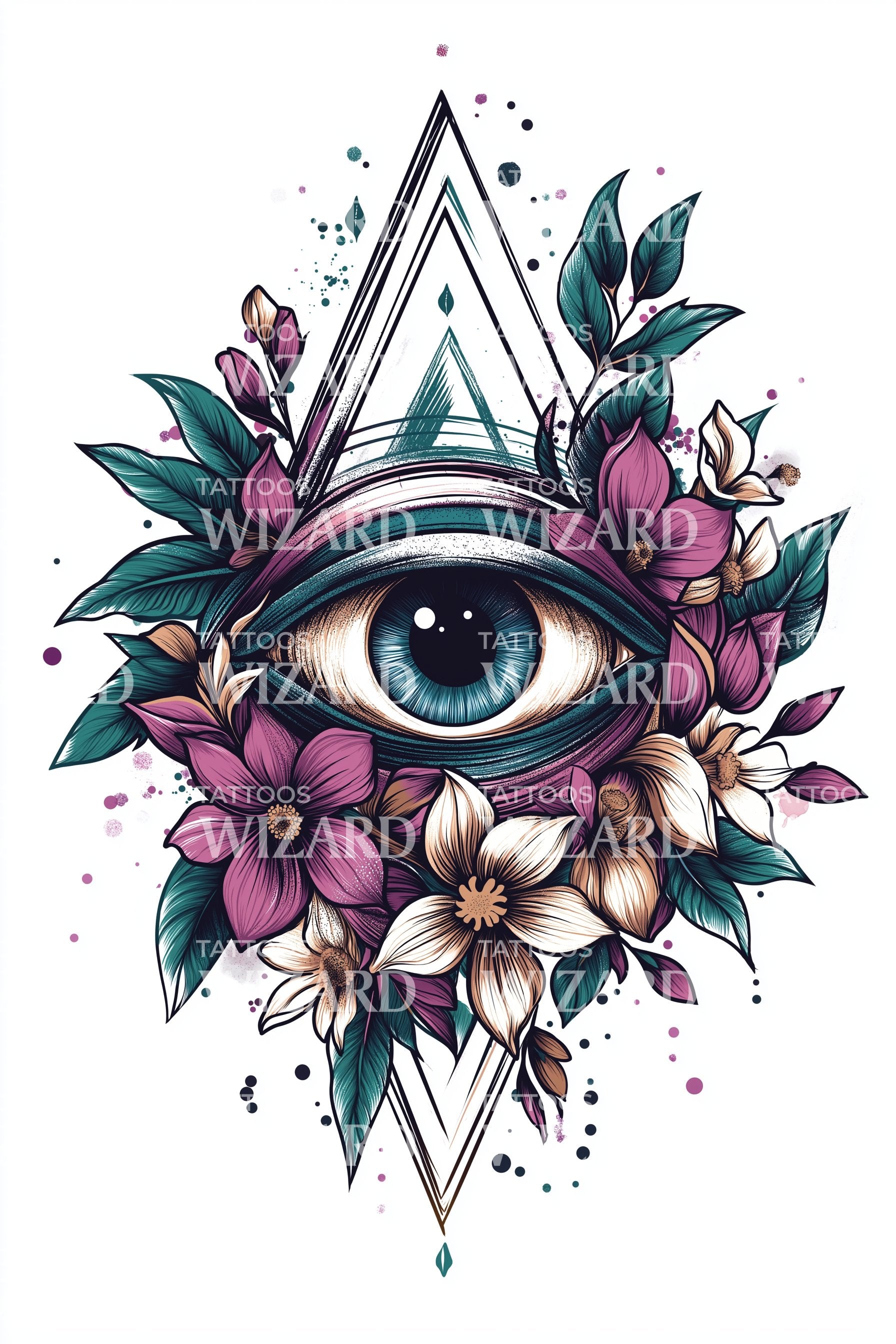 几何花卉眼睛纹身设计