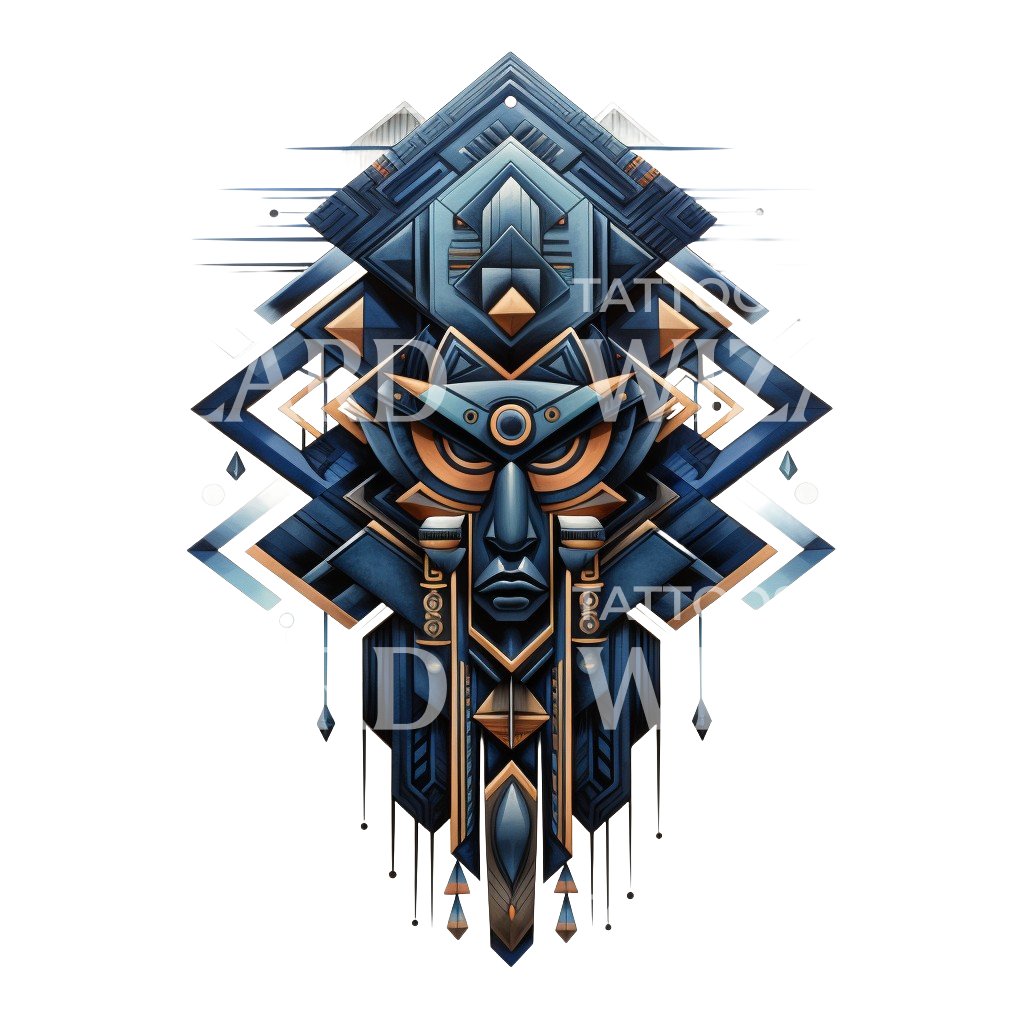 神秘的阿兹特克神祇雕像纹身设计