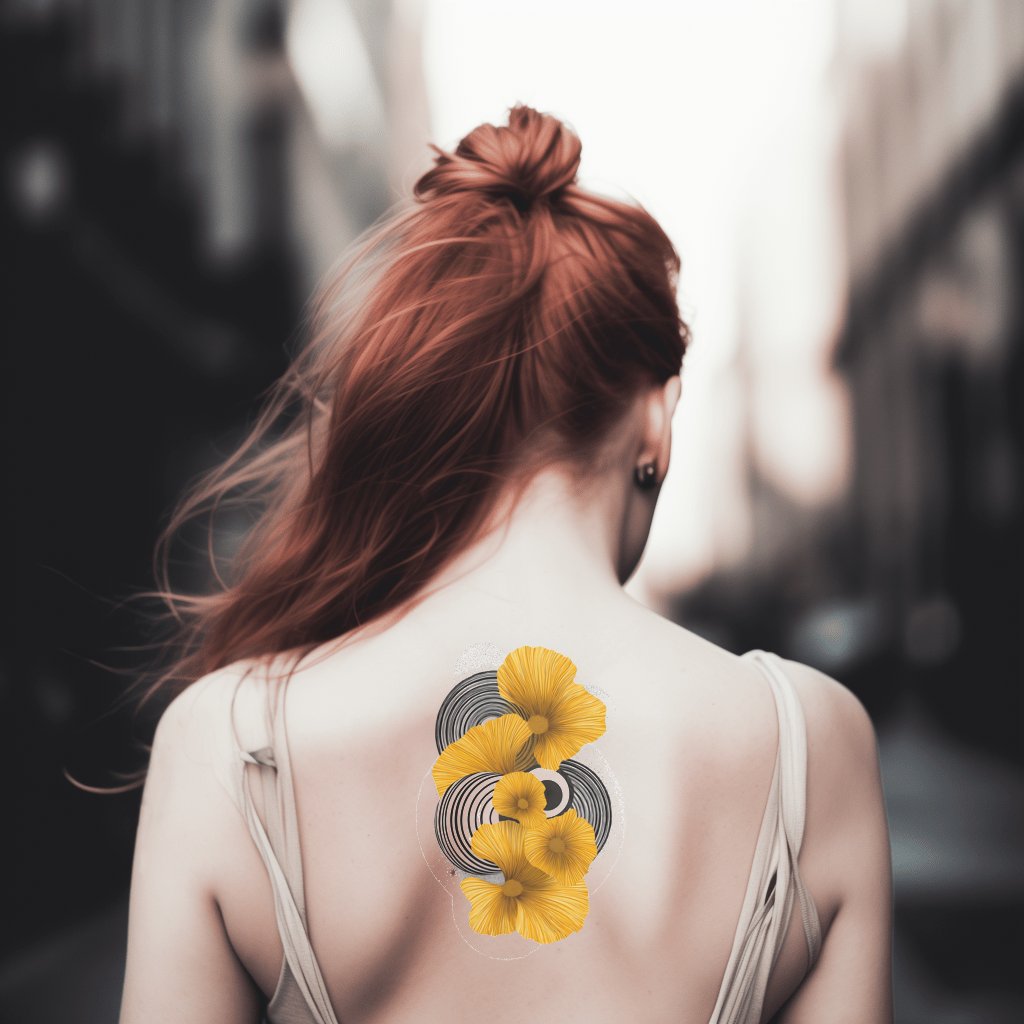 沉浸于这款水彩纹身设计的奇幻魅力,巧妙融合了抽象的银杏和花卉图案。月亮元素为植物主题增添了天体的魅力,为色彩调色板带来了一抹空灵。对于那些渴望将艺术与自然佩戴于肌肤上的人来说,这是完美之选。