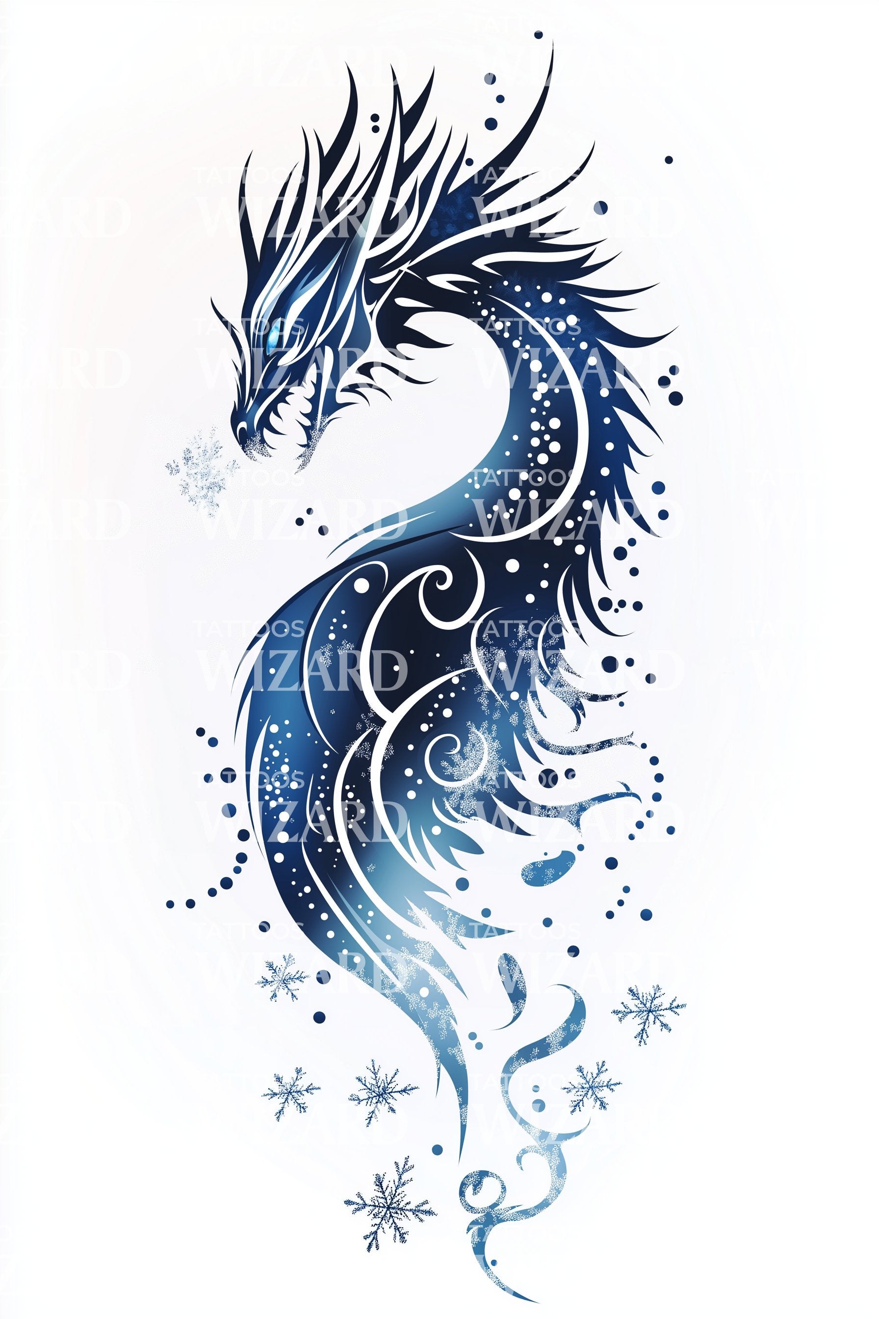 体验日本民间传说的神秘力量,这款令人惊叹的纹身设计展现了一条传说中的冰蓝色巨龙,捕捉了这条巨龙在暴风雪中心的身影。它是力量、韧性以及古老传说冰冷魅力的鲜明象征。