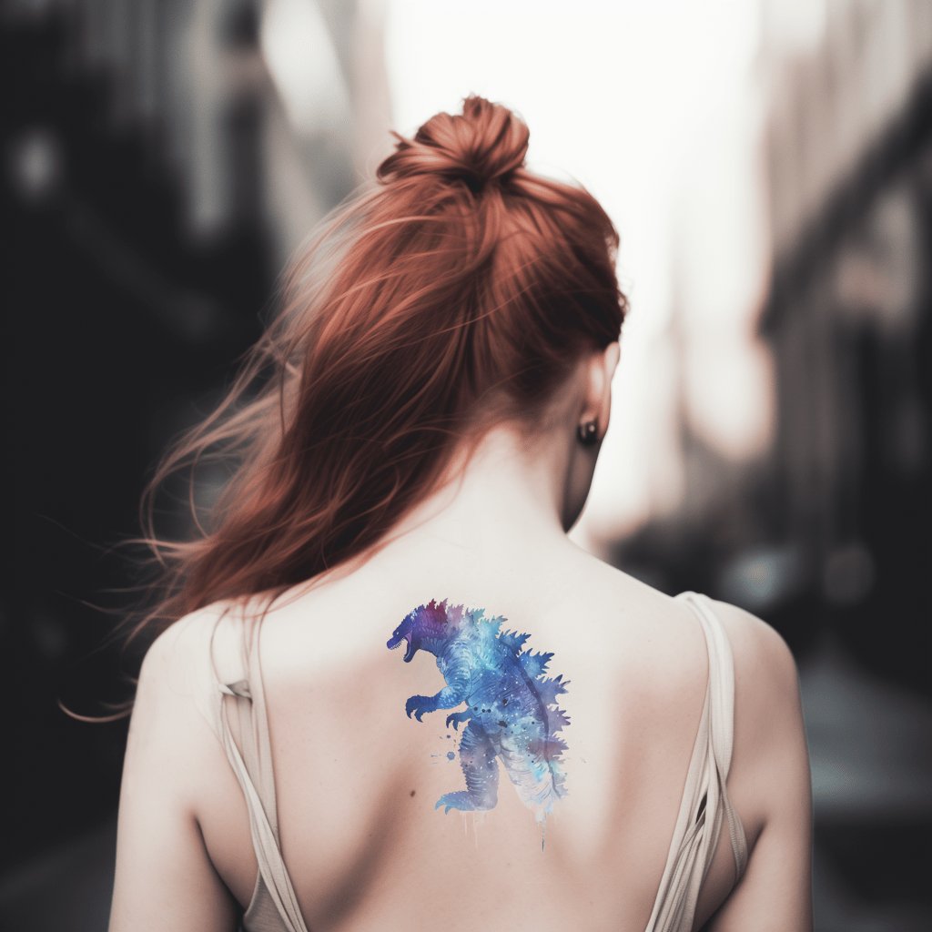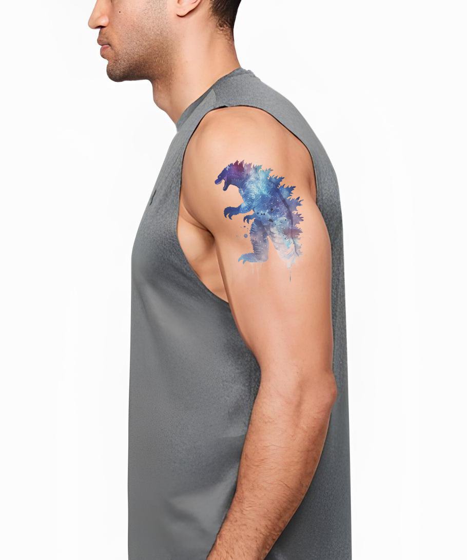 释放你内心的狂野,与这款水彩哥斯拉纹身设计!展示出引人注目的色彩融合,这件作品捕捉了传奇怪兽的标志性形象。无论是电影怪兽的粉丝,还是大胆的艺术表达,这个强大的设计都将让你的肌肤咆哮。