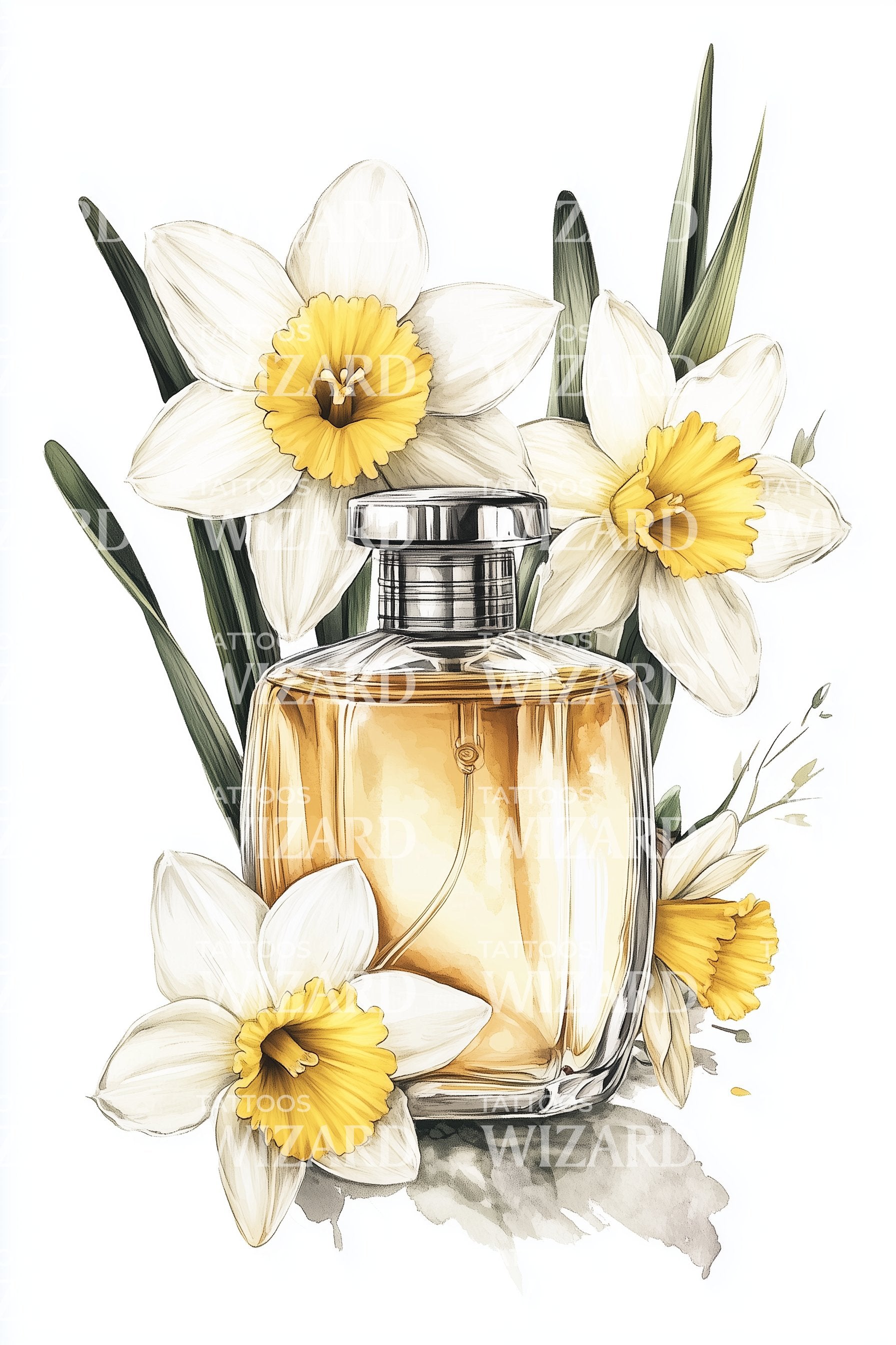 沉浸于奢华之中,感受我们的写实纹身设计。金色调为传统的水仙花图案增添独特韵味,辅以细腻的香氛点缀,层次丰富。这不仅仅是一个设计;它是奢华与优雅的象征。