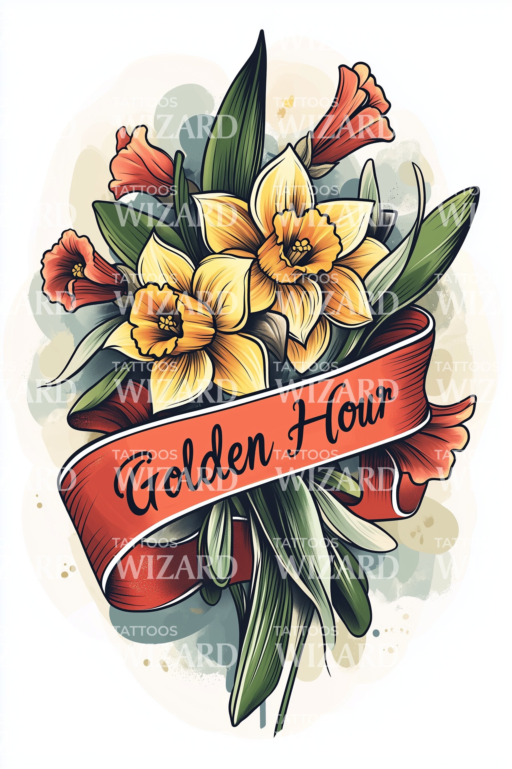 金色时光水仙花纹身设计