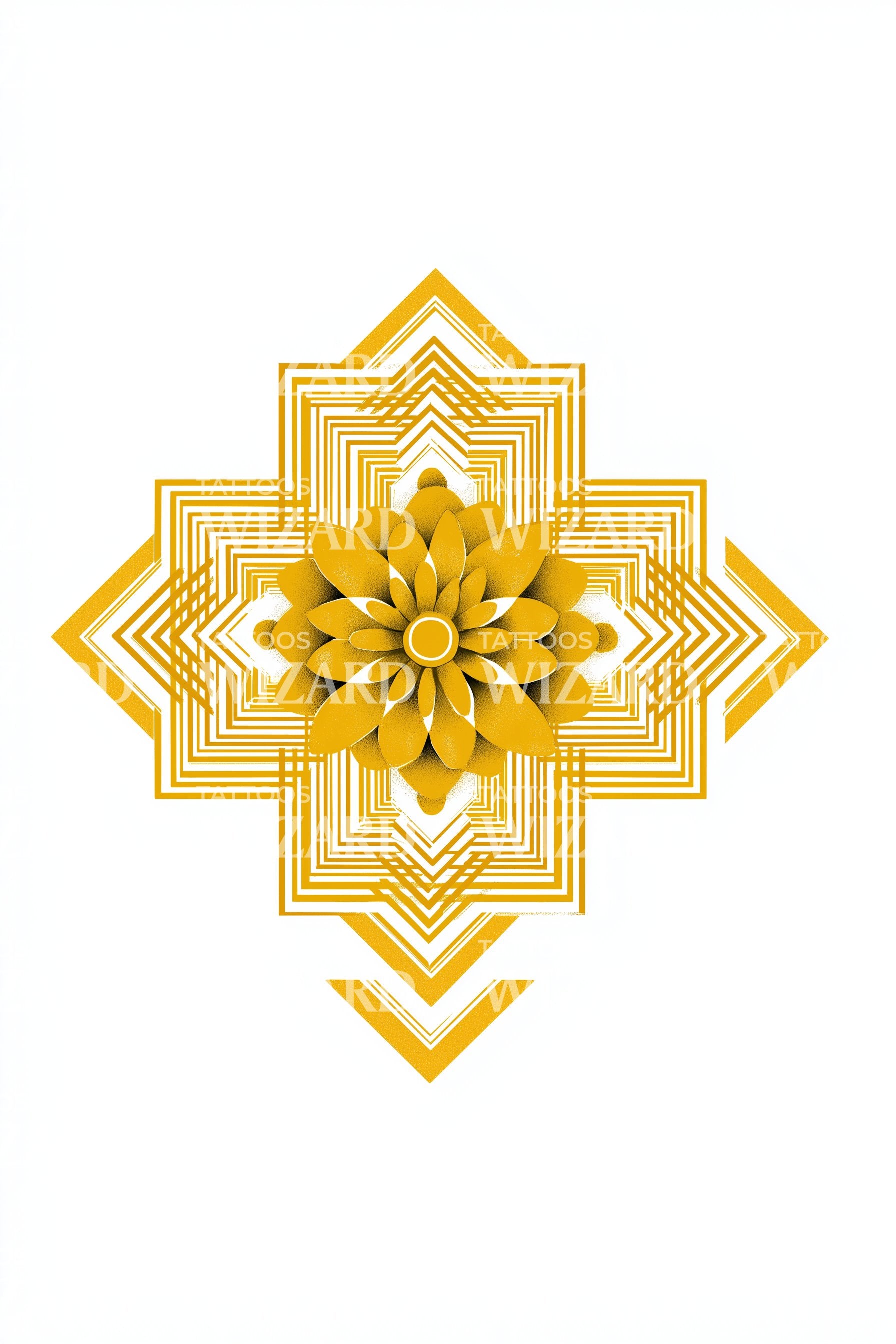 沉浸于我们金色曼陀罗纹身设计的非凡魅力中。这是一幅奢华与对称完美融合的画面,其复杂的图案灵感源自花朵的和谐绽放。伴随着复杂与宁静的迷人结合,开启一段精神之旅。