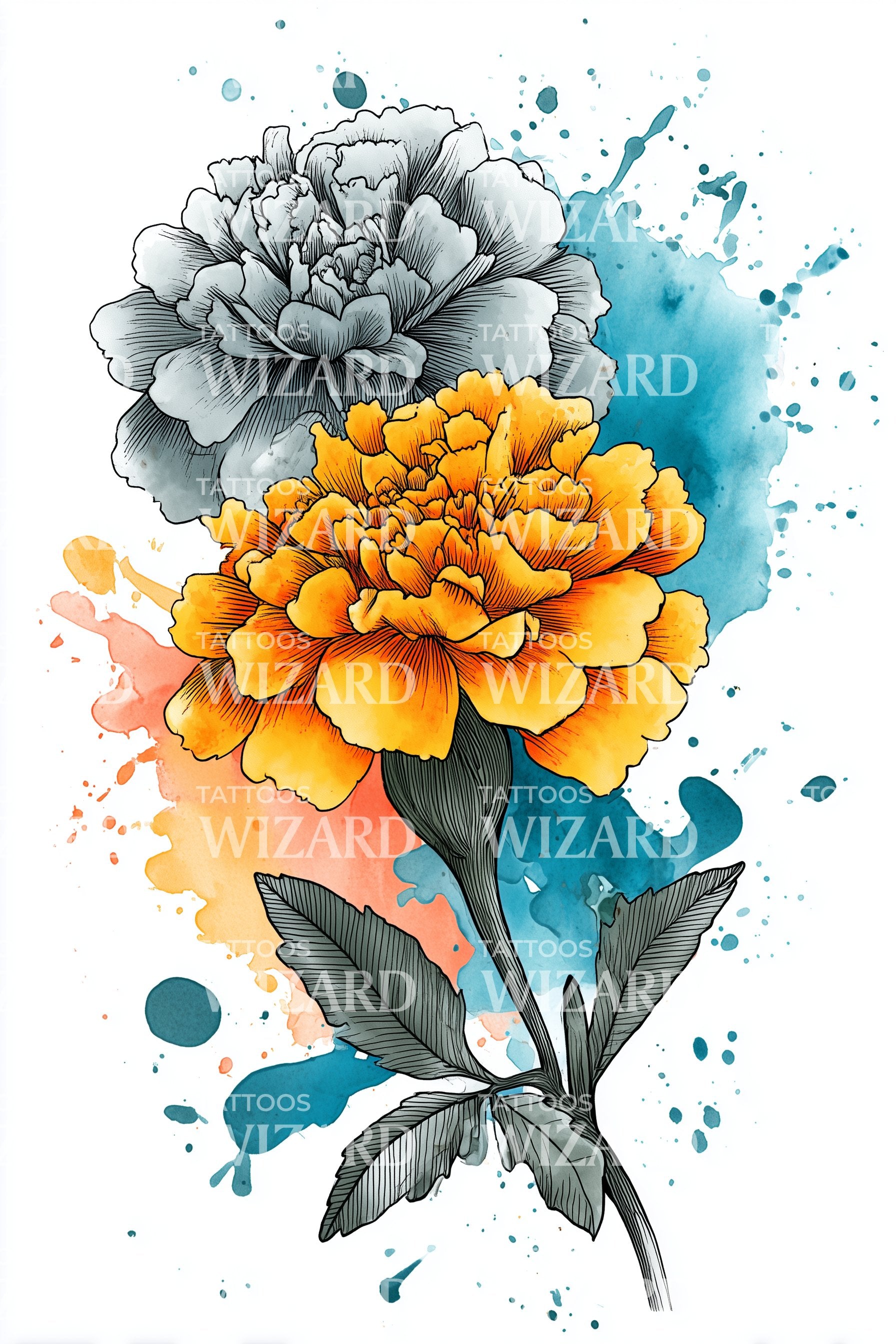 释放你内心的优雅,这款金色牡丹纹身设计采用迷人的水彩技法绘制。设计中融入丰富的青绿色调,优雅地交织花卉美学,增添一丝高贵气息。这朵光彩夺目的花卉作品,完美适合欣赏纹身艺术精髓的你。