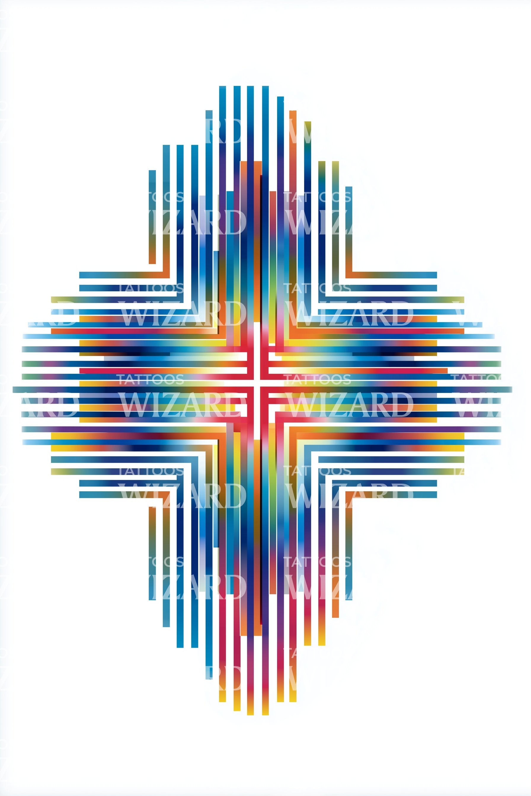 体验现代表达中的信仰,这款几何纹身设计大胆运用渐变色块,巧妙地像素化形成象征精神虔诚的十字架符号。非传统却寓意深远,这件作品轻松融合了传统与当代美学。