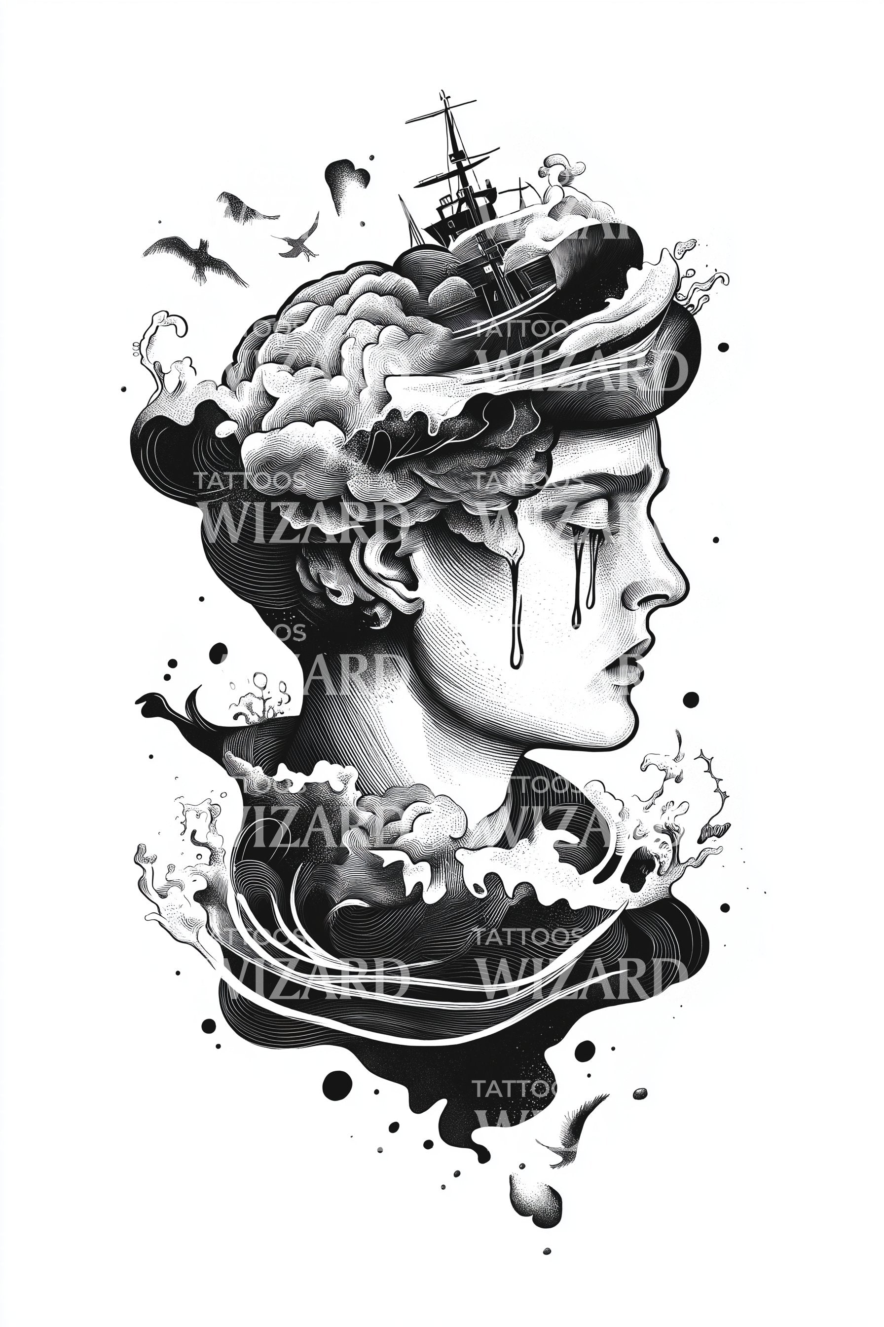 沉浸于古典魅力,这款经典希腊雕像纹身设计。艺术性的黑色线条与鲜艳的花卉交织,打造出超越时光的精彩画面。此设计不仅致敬希腊文化遗产,更为您的纹身收藏增添独特风采。