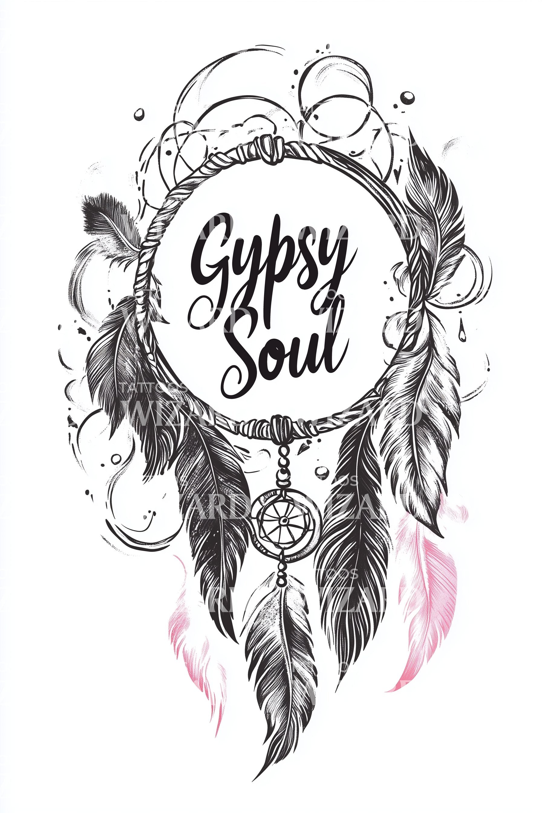 Gypsy Soul Boho Feathers Tattoo Design