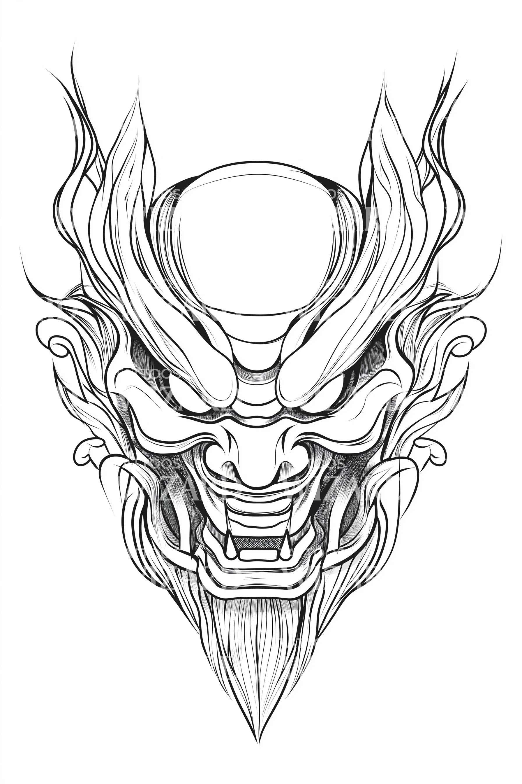 般若恶魔面具纹身设计
