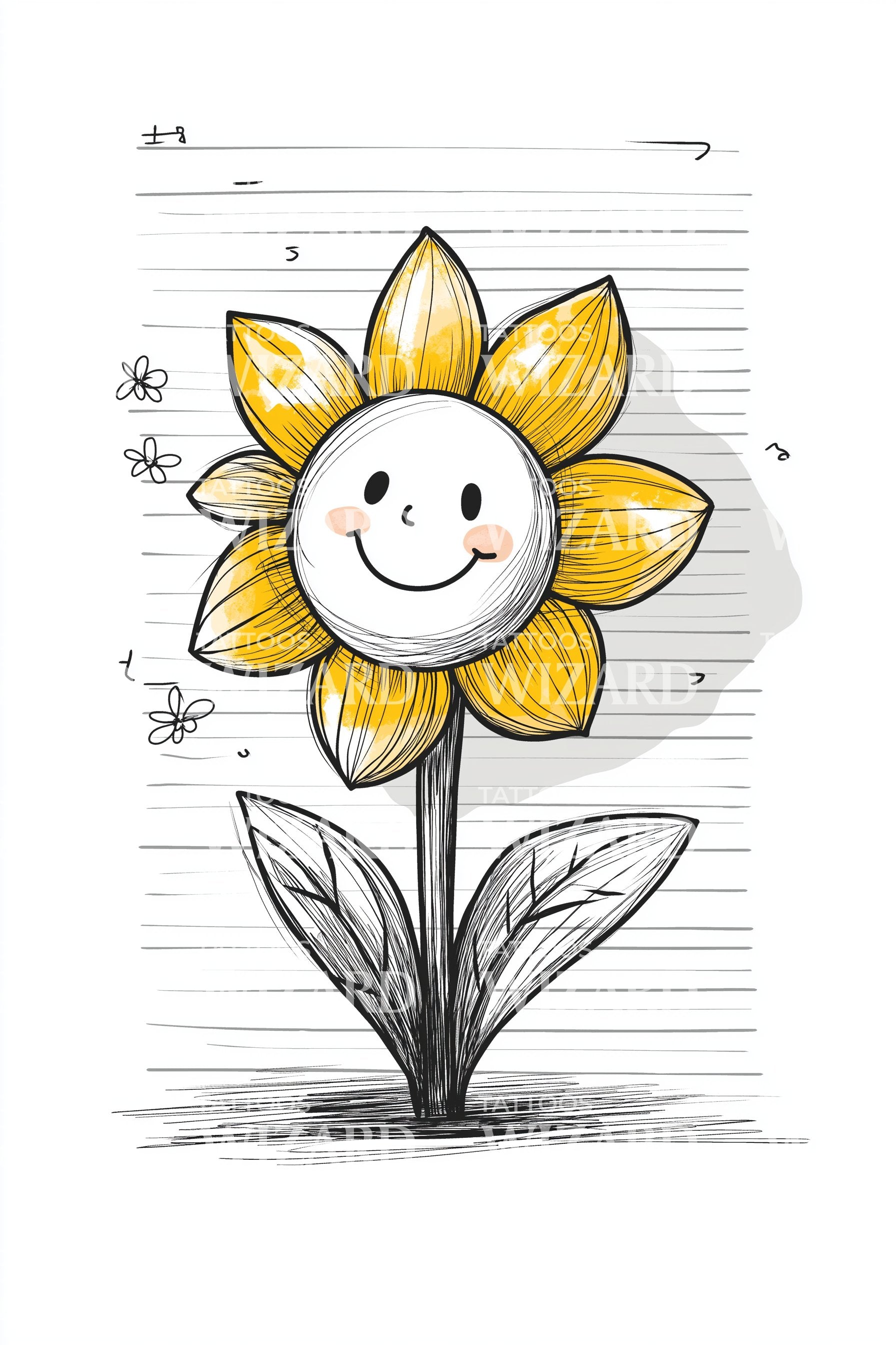拥抱快乐,这款俏皮的素描纹身设计以令人愉悦的水仙花图案为特色。极简风格捕捉了盛开水仙花的幸福本质,配有一个调皮的微笑细节。它提醒你在简单的小事中寻找快乐,并永远携带一份春天的气息。