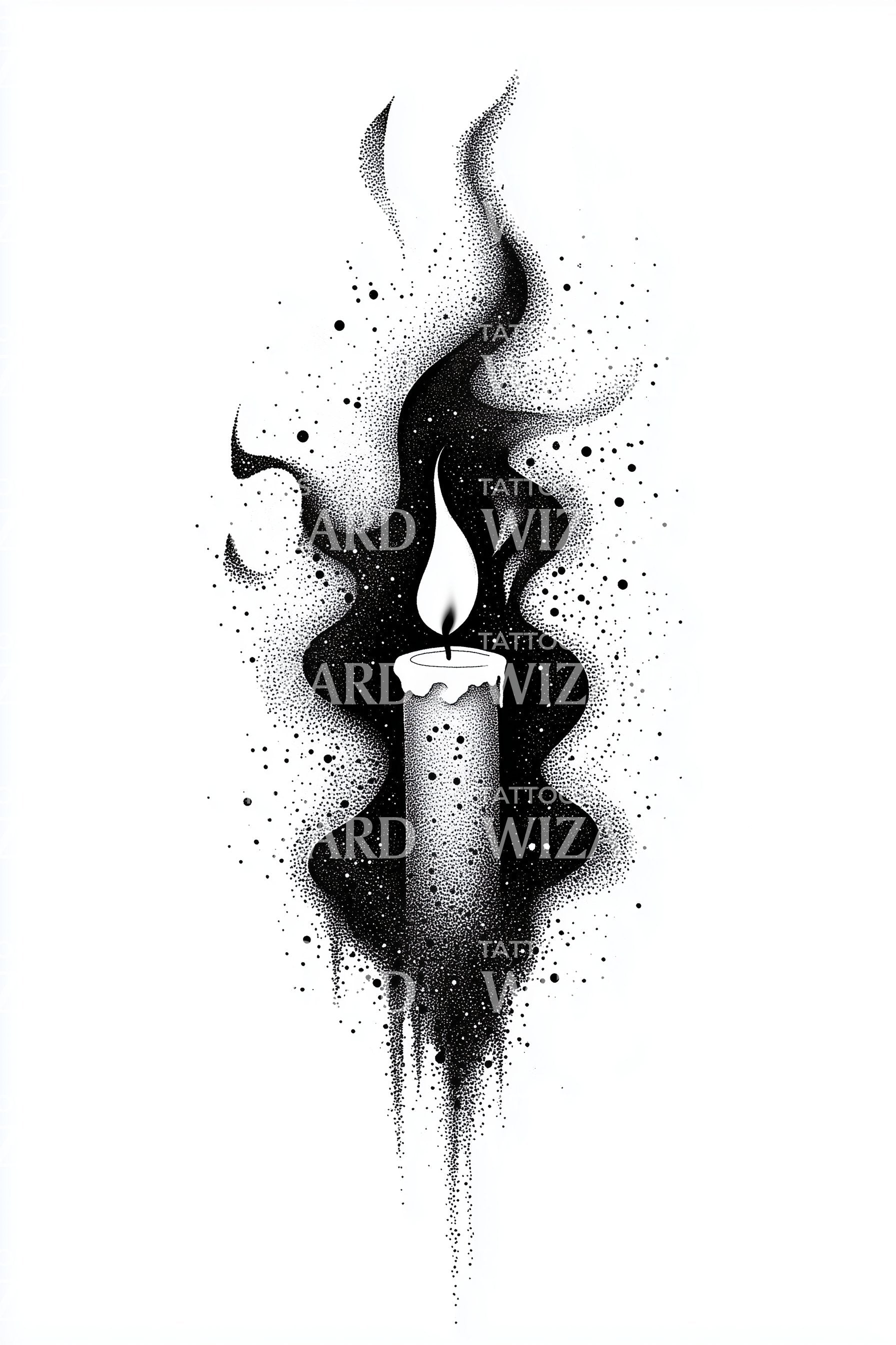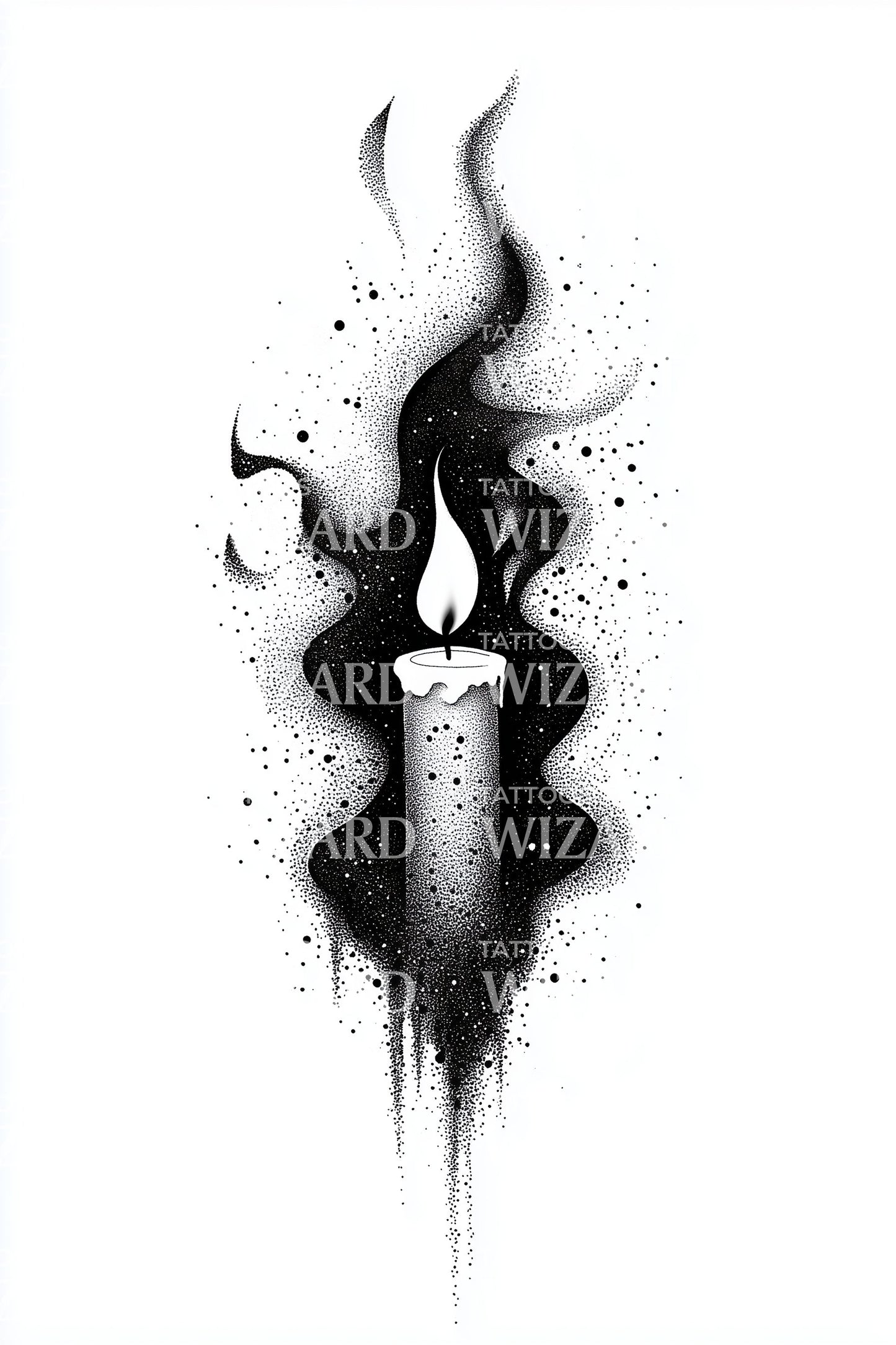 沉浸于幽灵世界,这款令人难忘的点描纹身设计细致入微。设计中一支摇曳的蜡烛被缥缈的烟雾缠绕,散发出无可抗拒的神秘魅力。精细的点描工艺增强了幽灵般的氛围,让你的肌肤成为一段诡异的故事。