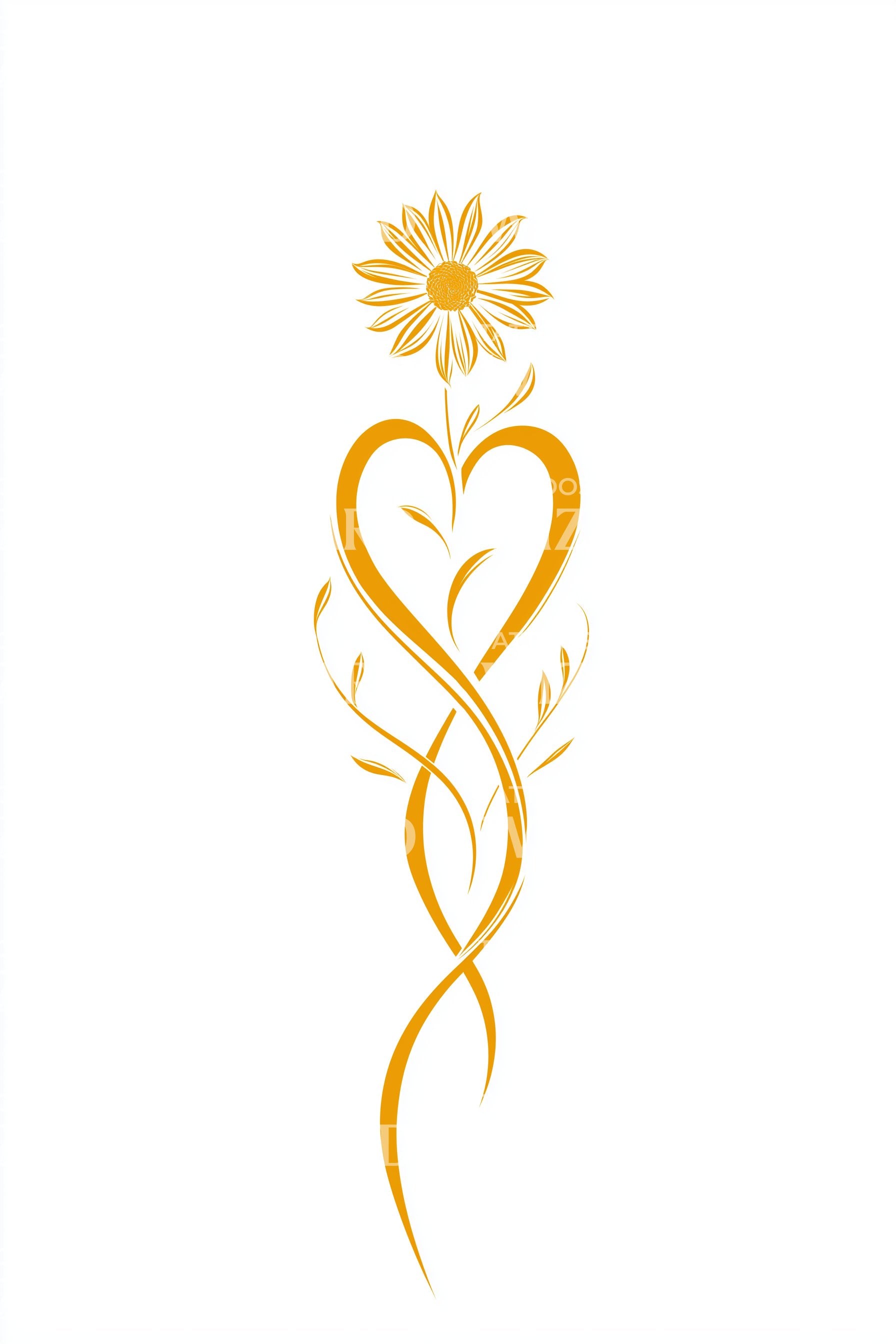 这款极简纹身设计巧妙地将金色心形与精致花朵通过流畅的线条艺术融合在一起。它完美地诠释了带有现代感的爱意。其简洁、极简的风格增添了一丝低调的优雅,轻松地将时尚与情感结合。