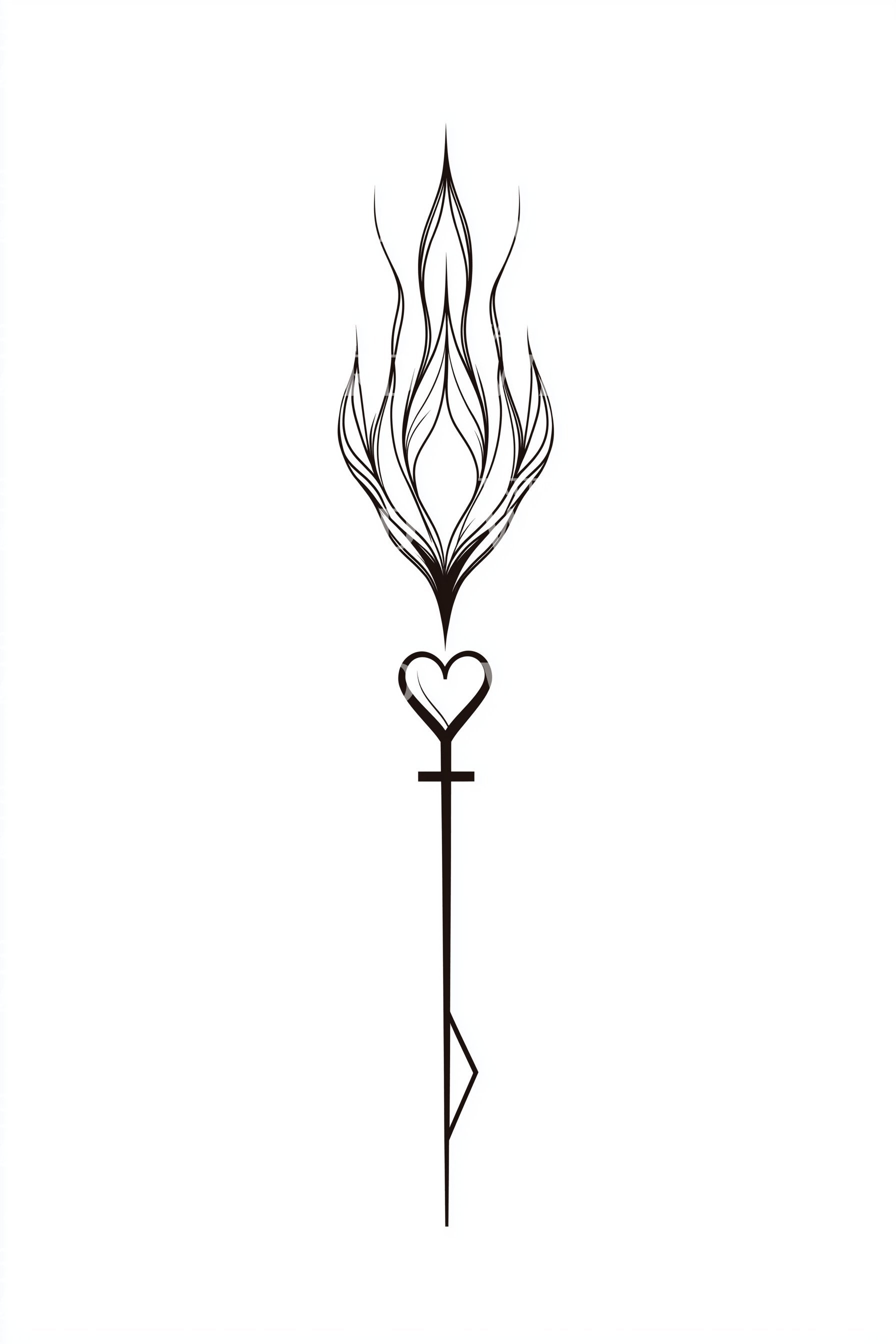 点燃爱与激情的精神,这款插画风格的纹身设计展现了火炬上燃烧的火焰之心。它巧妙融合了迷人的象征意义与流畅的细节描绘,是对每个热情爱人心中燃烧欲望的完美见证。