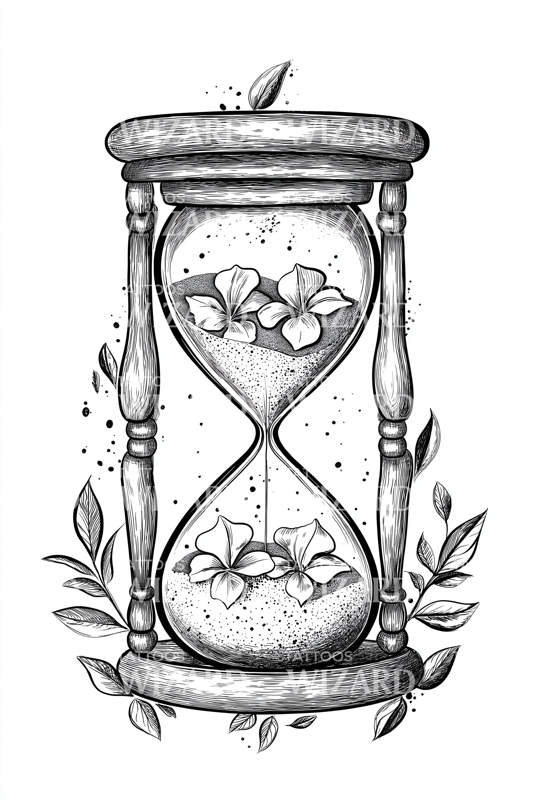 这款经典纹身设计巧妙地将爱与时间交织在一起,展现了一个华丽的沙漏和心形符号。其精致的细节彰显了时间与爱的永恒关系。经典主题与独特设计的结合,必将成为您纹身收藏中永不过时的珍品。