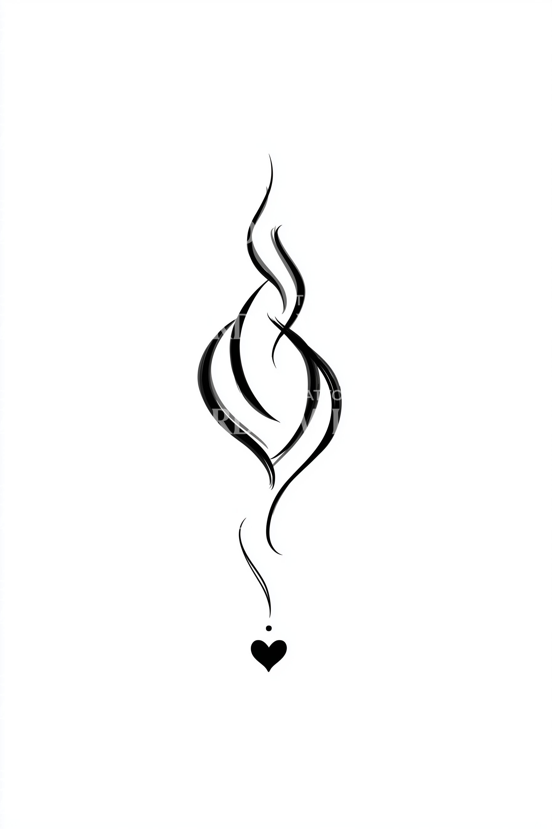 这款细线纹身设计巧妙地将抽象元素与细腻融合,勾勒出一个令人惊叹的心形轮廓。凭借其复杂的线条和环绕细节,这件作品超越了传统纹身艺术,呈现出一种独特而精致的爱与创意表达。