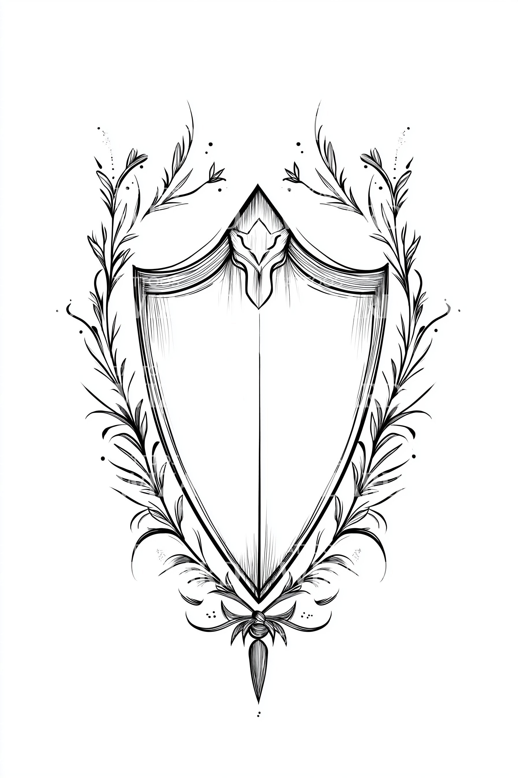 纹章盾牌由精致的花卉月桂环绕,顶端饰以简约的纹章,底部点缀一朵垂挂的花朵。象征保护、血统与优雅,守护内心,同时以坚韧绽放。佩戴如静谧的盔甲,优雅且自信。理想位置:胸骨、前臂、小腿、上背部,沿其垂直对称排列。
