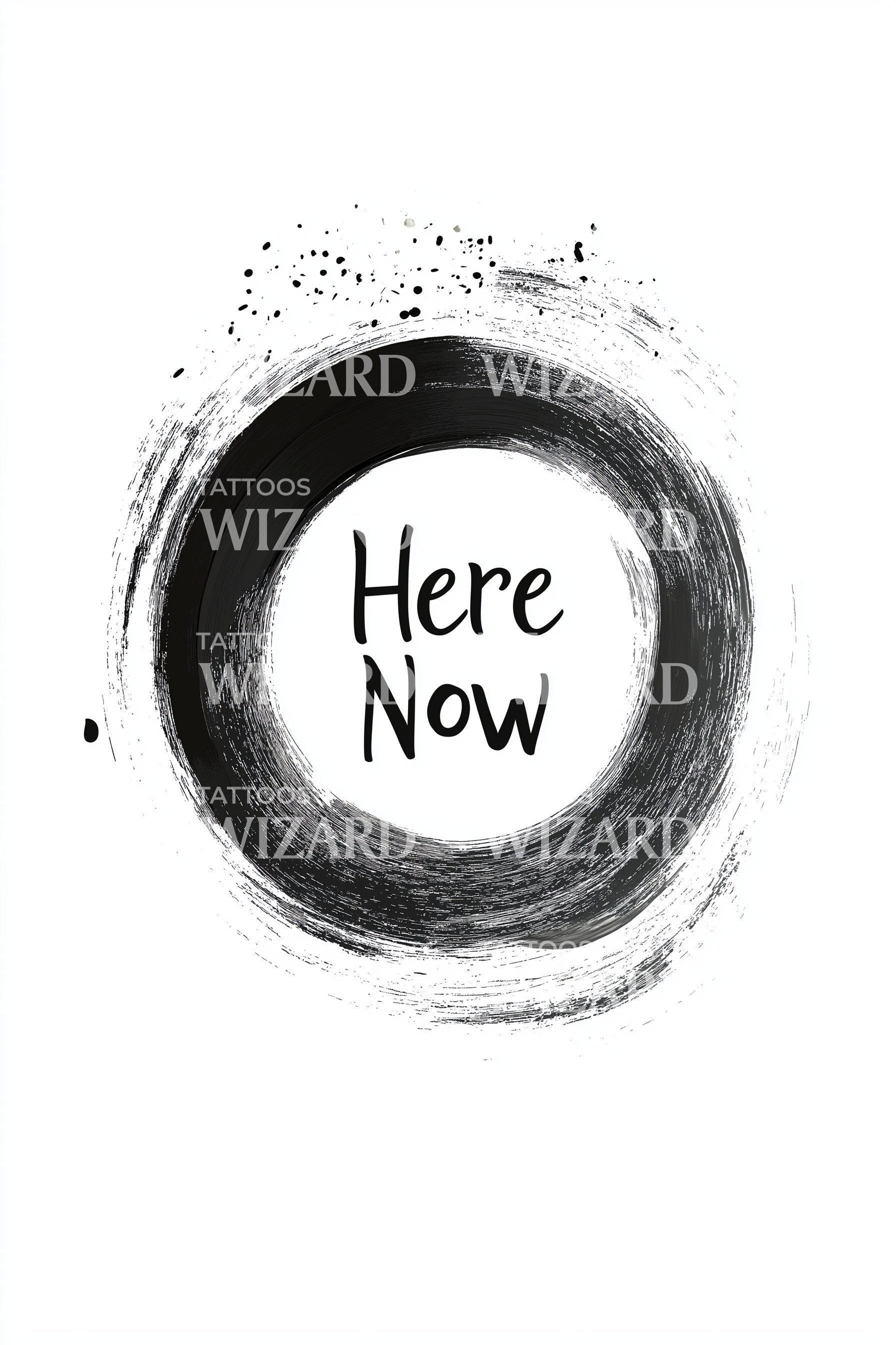 Bold ink enso, a single brush circle framing the words Here Now. Soft splatters and textured strokes create minimalist movement. Symbol of Zen presence, the ring suggests wholeness and returning breath. Wearing it invites calm, grounded mindfulness, a quiet reminder to arrive, notice, and simply be each day.