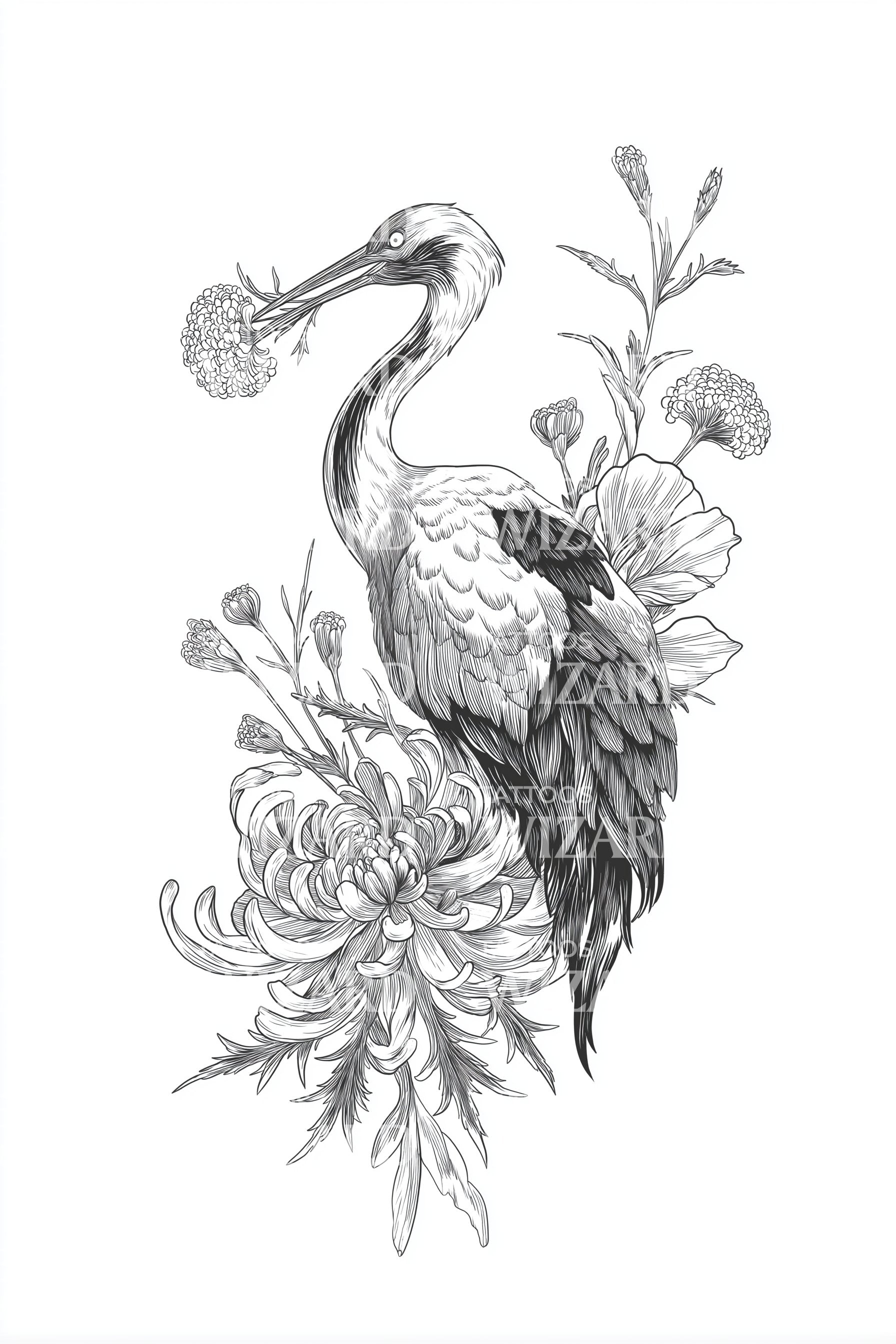 优雅苍鹭线条纹身设计