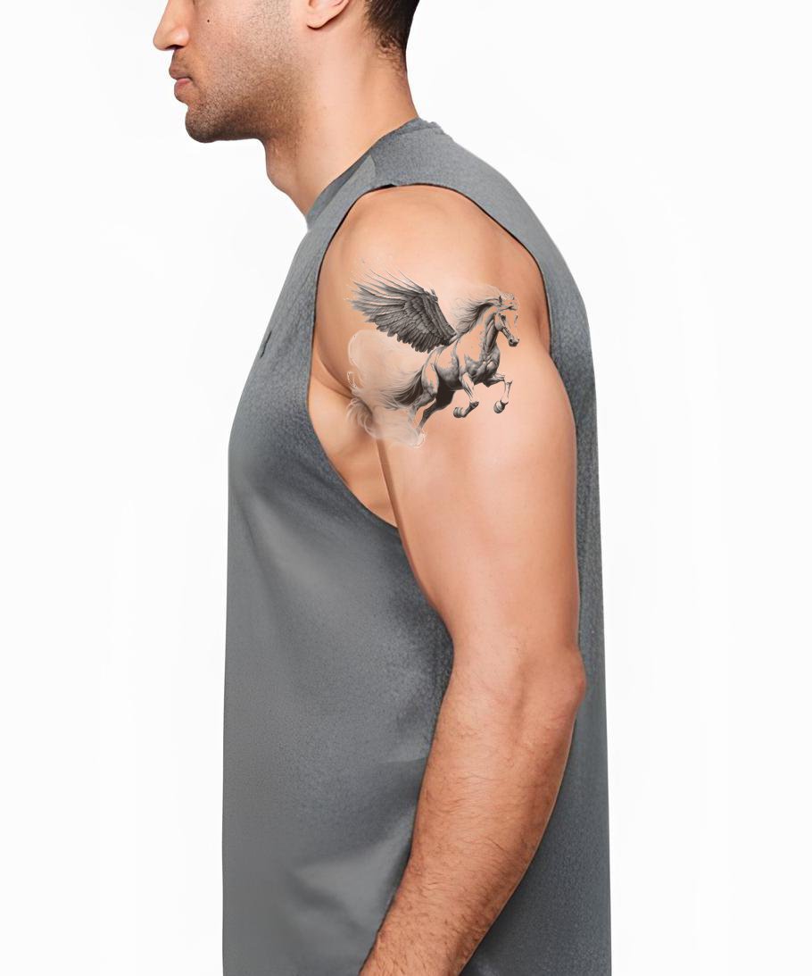 体验这种逼真的马纹身设计所带来的辉煌。它的平静气质散发出精神之美,突显了你对雄伟动物的亲和力。这幅令人惊叹的马的优雅描绘象征着自由、力量和自然之美,这个纹身回响着你与精神动物之间的深厚联系。