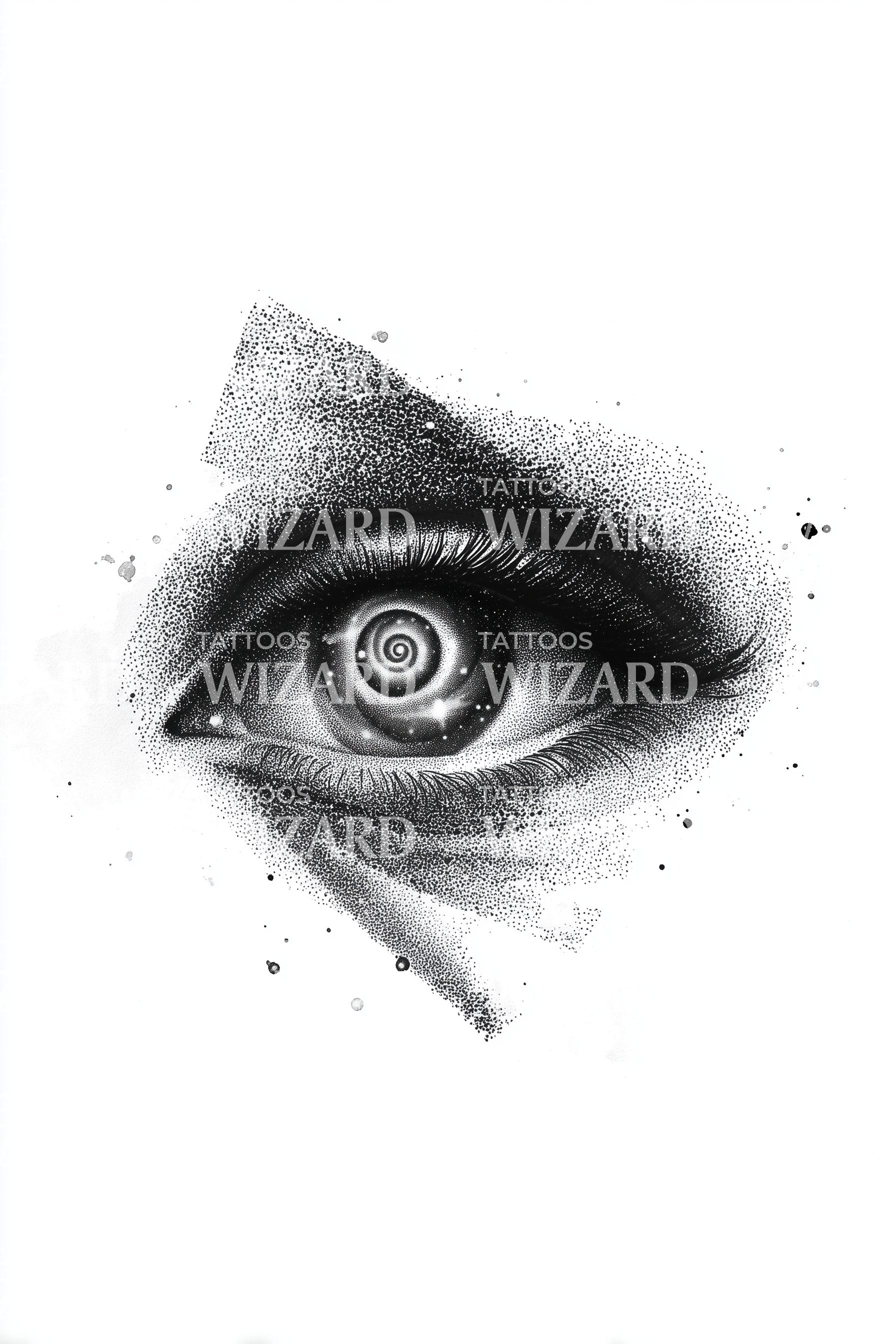 这款催眠般的黑灰色纹身设计以抽象的眼睛形象吸引人。单色调赋予作品深度,激发专注与洞察力。非常适合追求前卫且发人深省的象征,这个设计定能吸引目光并引发讨论。