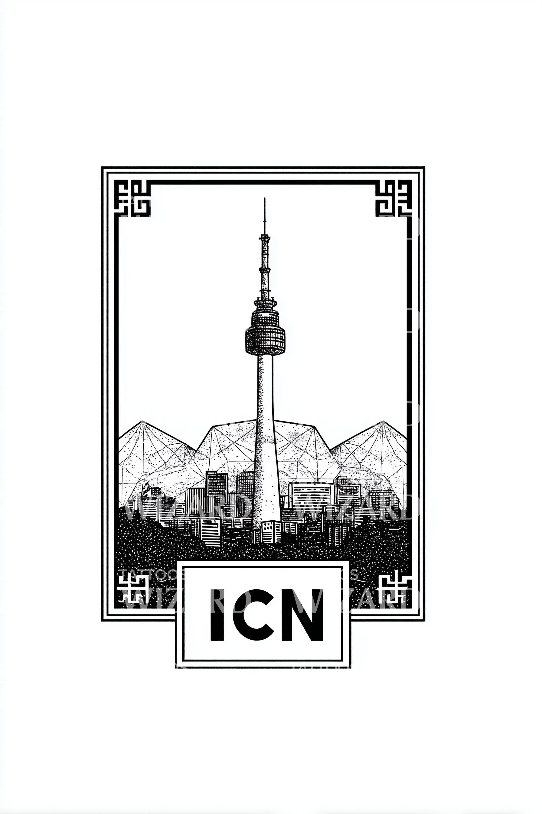 Minimal ICN Tower Tattoo Design