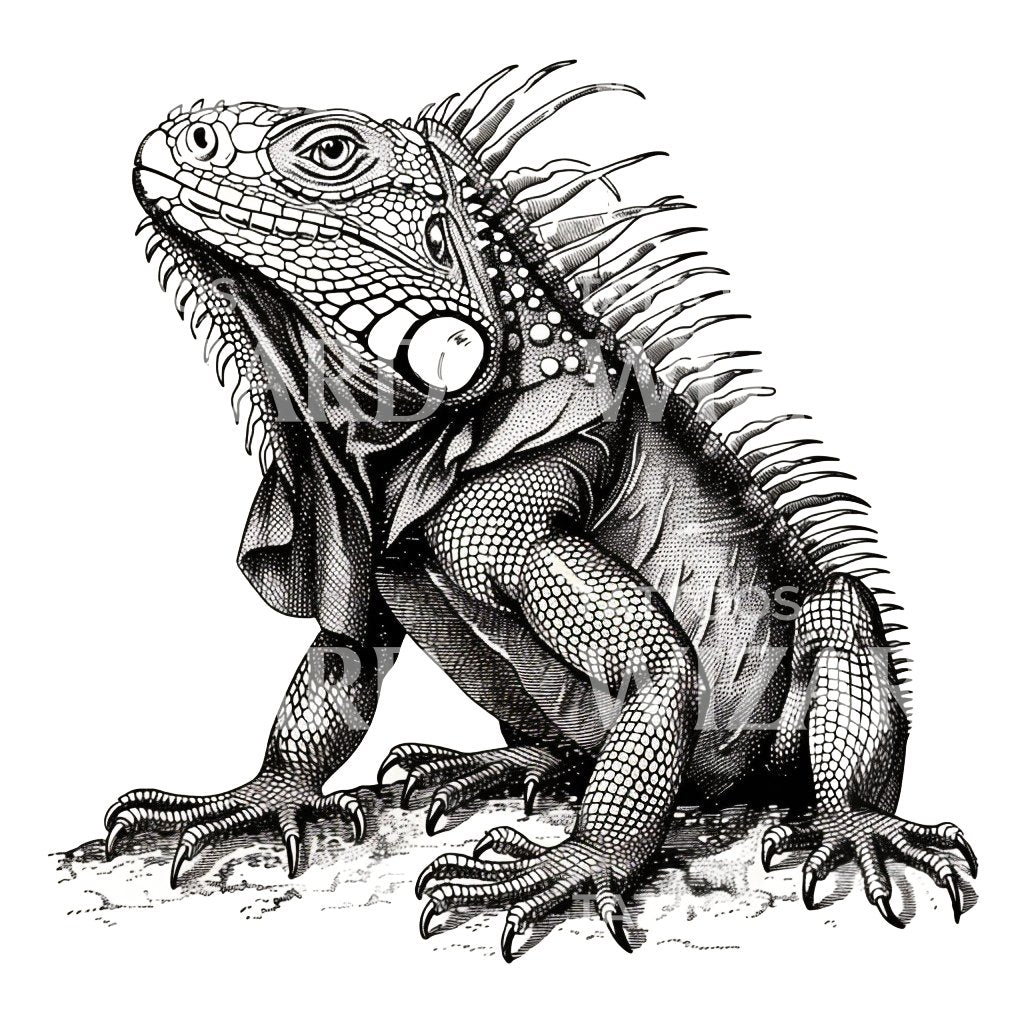 沉浸在墨水的世界中,欣赏这款精美的黑灰色鬣蜥纹身设计。它完美地融合了素描技巧和艺术优雅,体现了与自然的独特联系。对于那些欣赏艺术与动物王国交融的人来说,这是一个引人注目的选择。