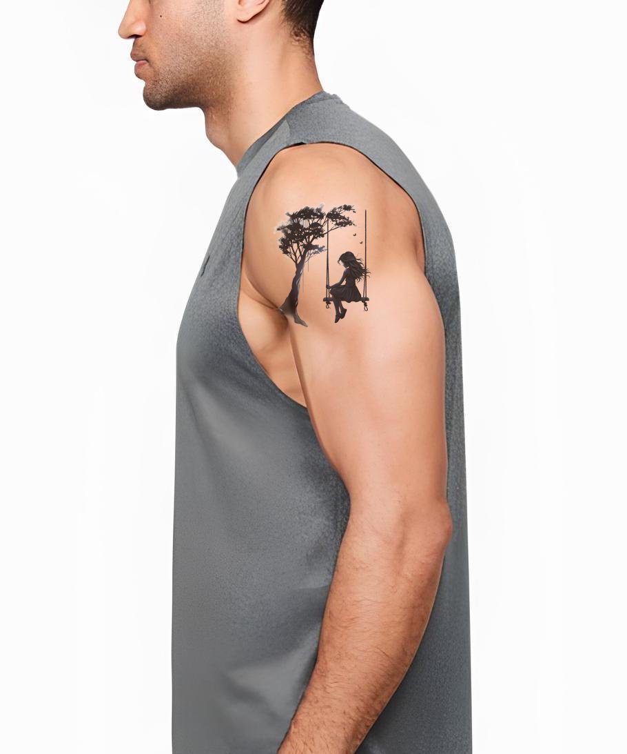 秋千上的女孩剪影纹身设计