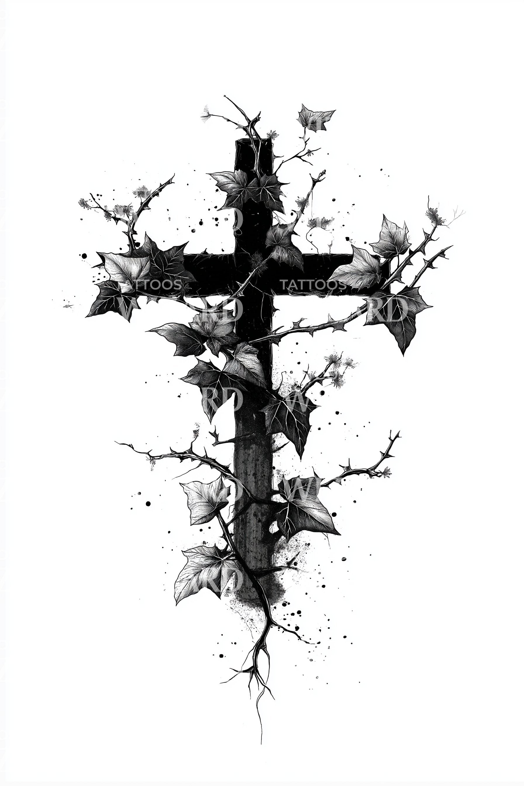 沉浸于这款独特黑灰纹身设计所展现的独特美学。灵感源自信仰,描绘出一座震撼的破碎十字架,唤起强烈的硬核勇气感。墨迹飞溅,设计捕捉了原始真实与非凡艺术表现的和谐融合。