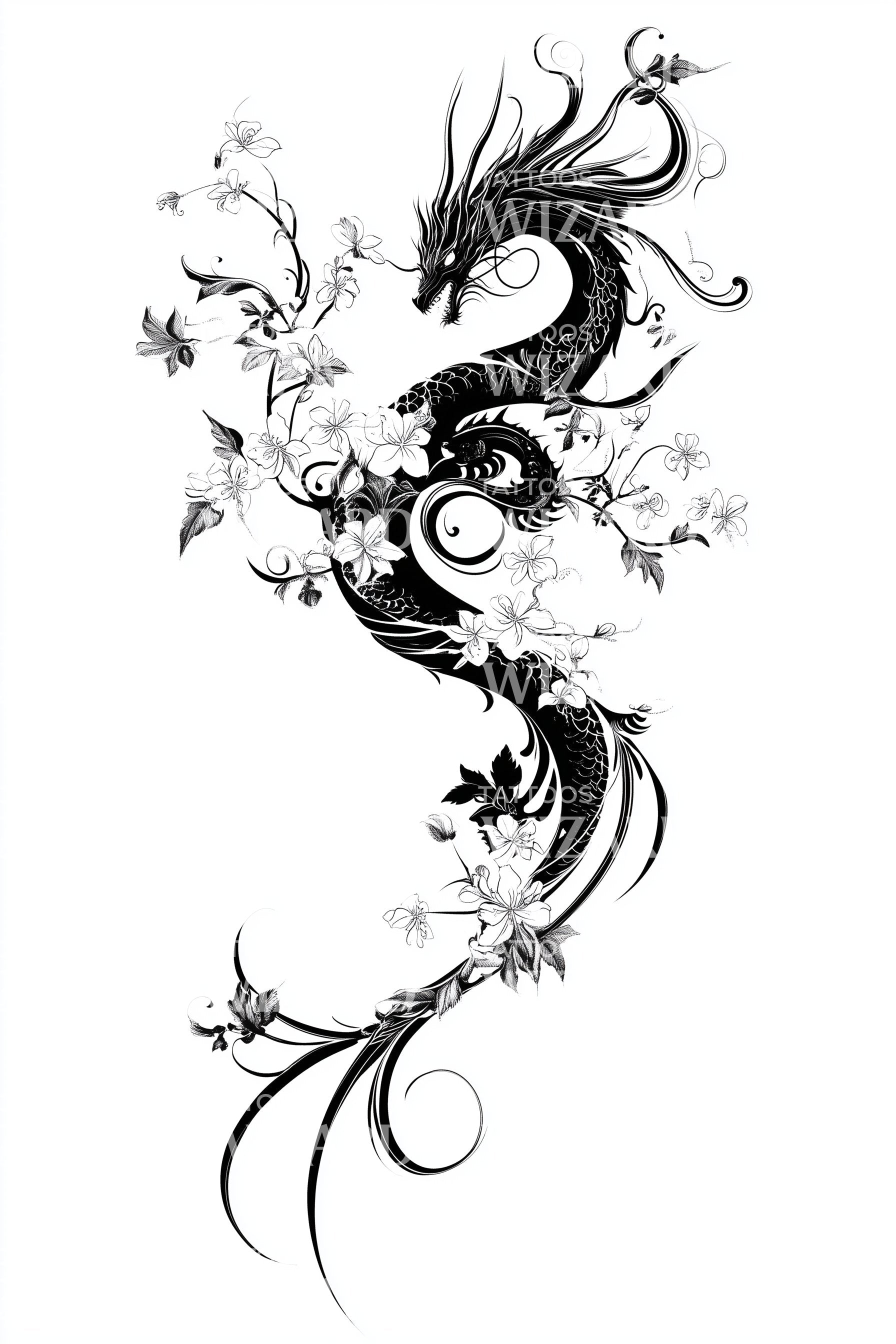 释放你的灵魂,选择我们的黑工龙纹身设计。精心打造,捕捉纹身优雅的精髓,展现出一条令人屏息的龙,在迷人的流动旋涡中舞动。这不仅仅是一款纹身——它是力量、勇气与自由魅力的象征。