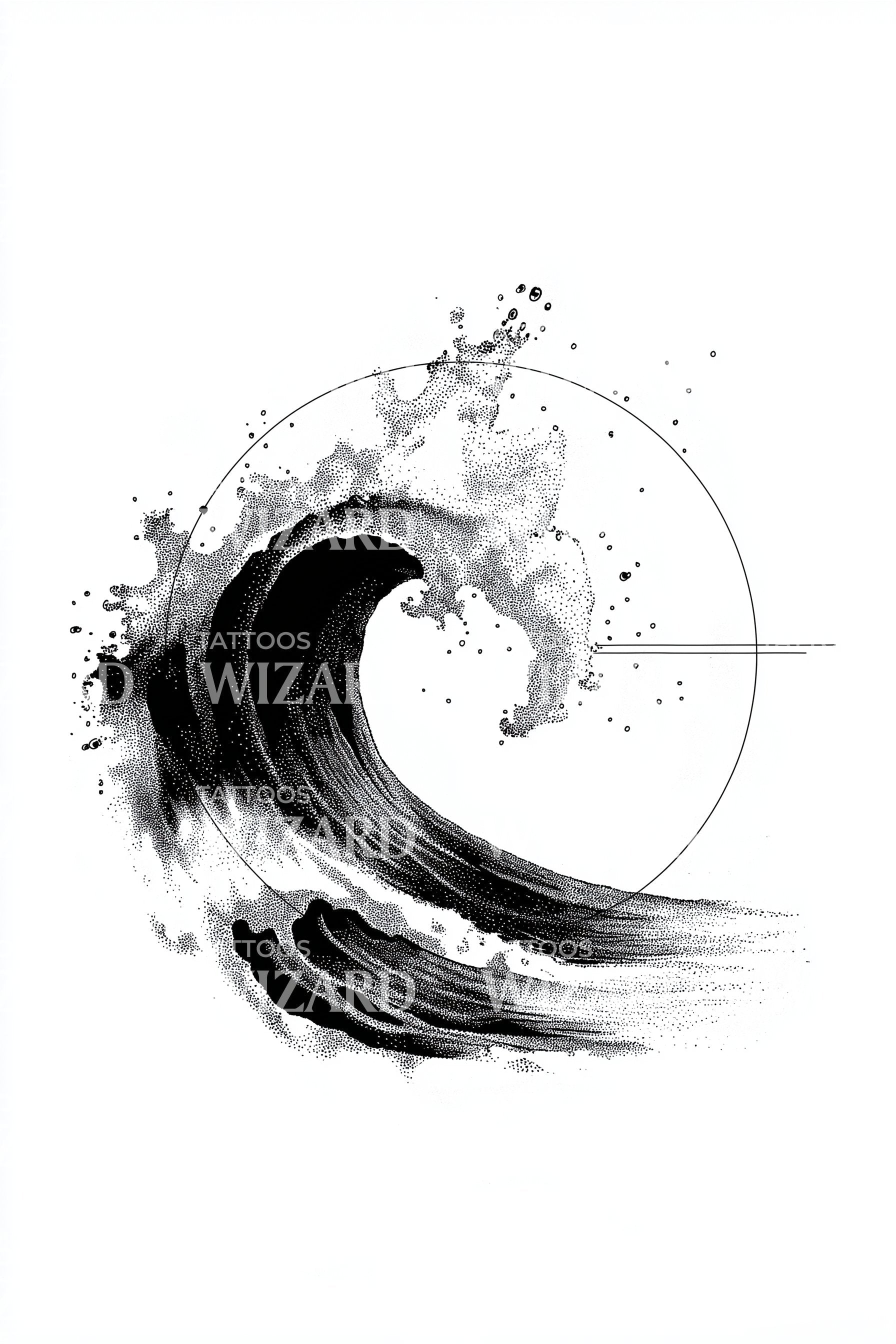 Crescent wave in sumi ink rises within a fine enso, stippled spray meeting sleek lines. In japanese spirit, the ocean speaks of impermanence, renewal, and disciplined freedom. Wearing it summons tidal energy, a clear breath of courage and calm, each splash a vow to keep moving, steadfast heart.