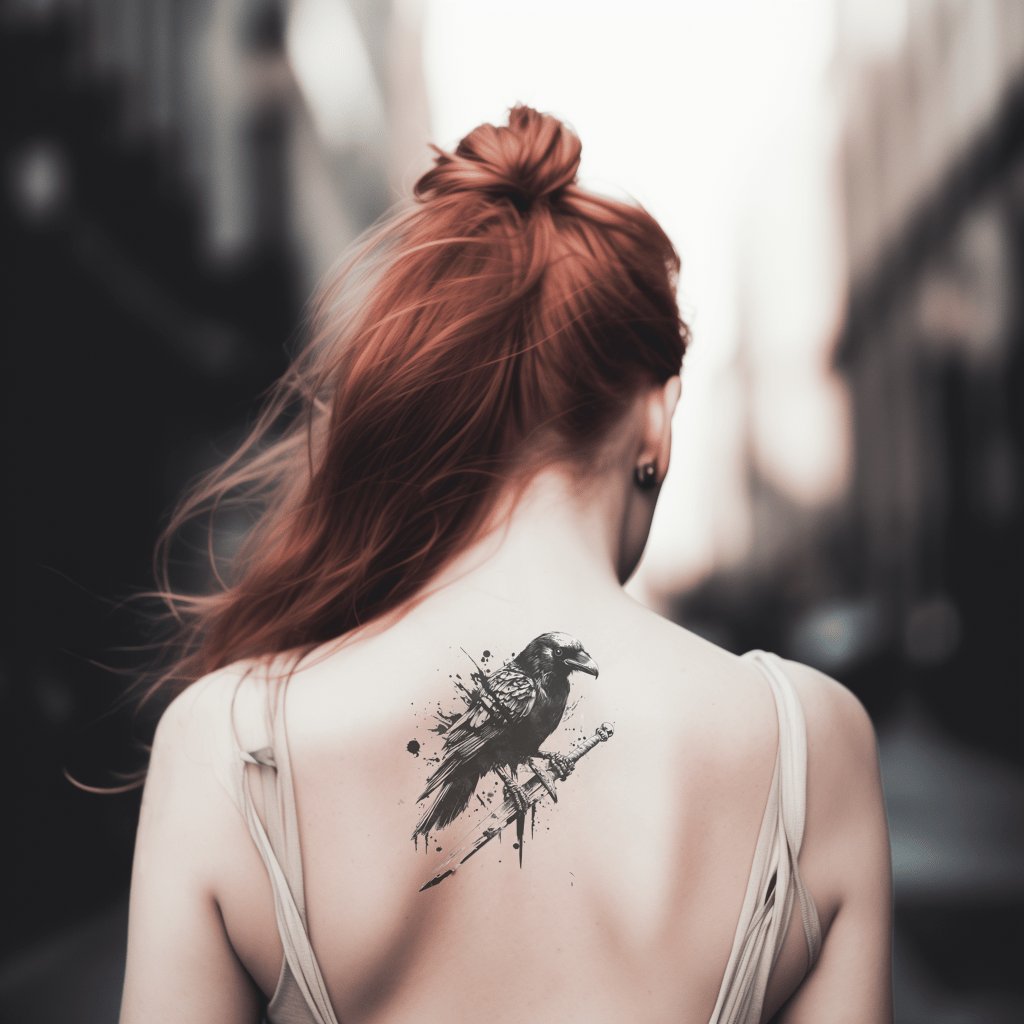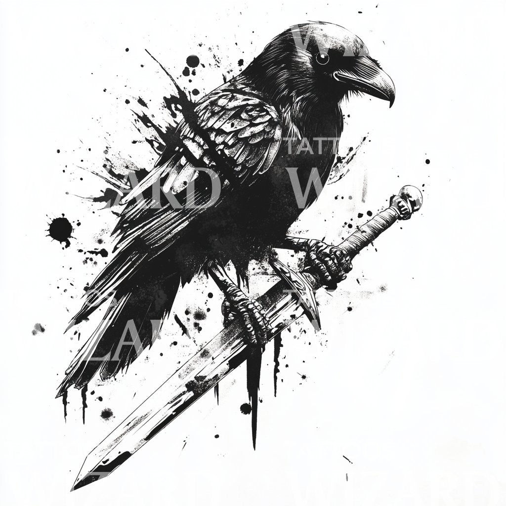 溅墨乌鸦与剑纹身创意