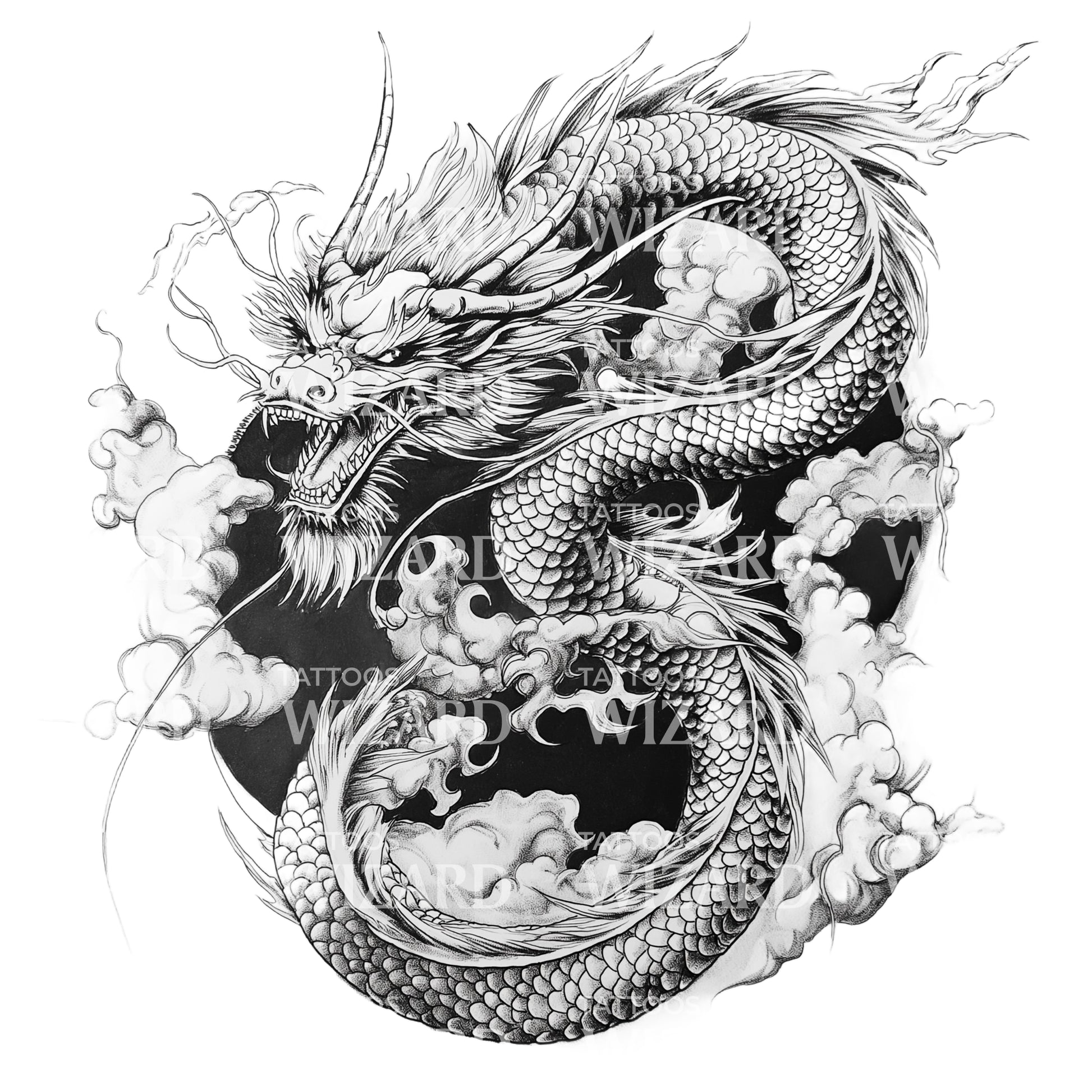 沉浸在这个传奇日本龙纹身设计的神秘魅力中。龙在富有表现力的云朵中蜿蜒流动,散发出东方的神秘感。以这个崇高的设计来尊重日本龙强大而神秘的象征,承诺留下雄伟的印记。