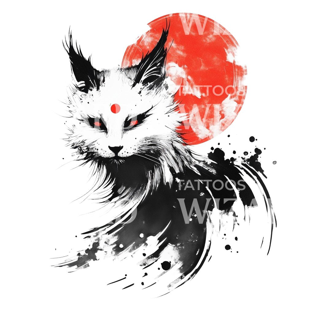 日本狐狸精与红月亮纹身设计