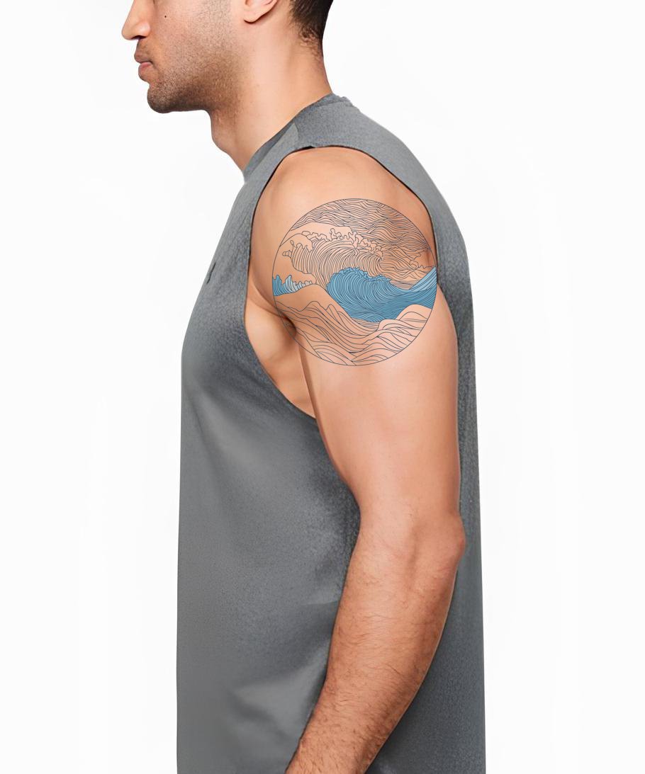 沉浸在日本美学的戏剧魅力中,体验我们的黑灰色风暴纹身设计。该纹身展现了日本对海洋的崇敬,描绘了一道在崩溃中汹涌的巨浪,散发出原始的力量和狂暴的美感。这件永恒的作品是海洋不羁、无尽节奏的迷人体现。
