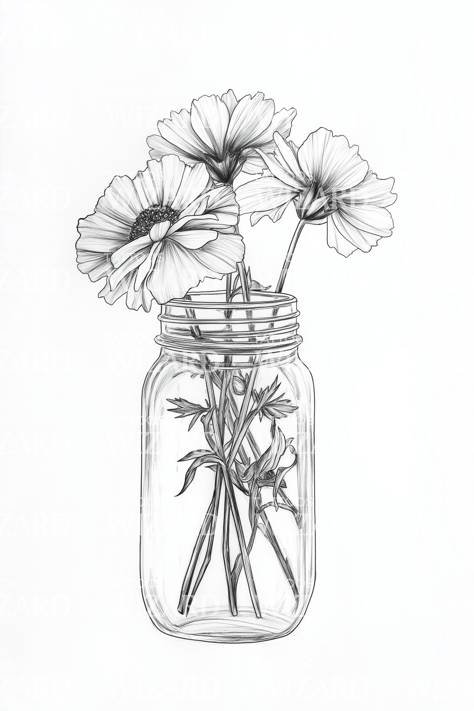 探索极简主义艺术,这款细线纹身设计精致无瑕,描绘了一朵迷人的康乃馨,盛放在一个小巧的罐子中,带来一抹植物的气息。细腻的线条细节突显了设计的优雅与简约,使其成为一件低调而别致的身体艺术作品。