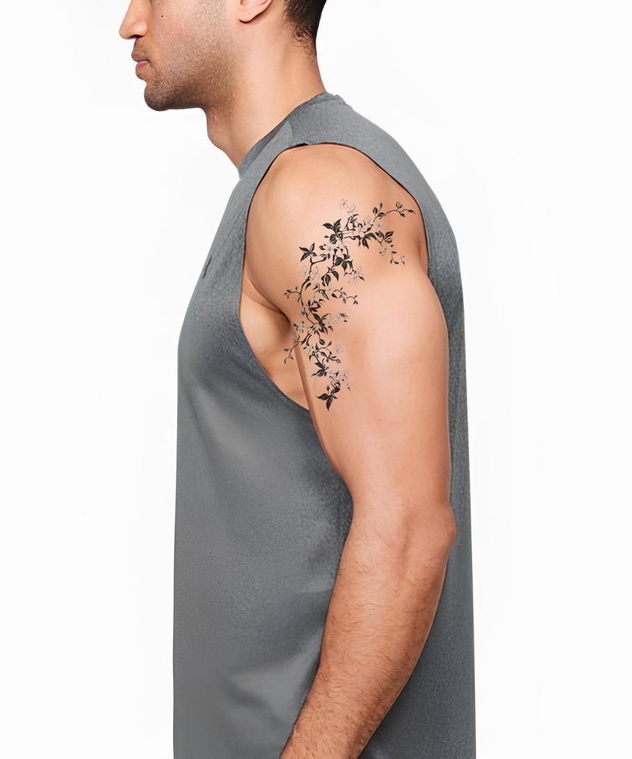 拥抱这款细线纹身设计带来的优雅气息。它展现了茉莉花与飘逸藤蔓的精致融合,辅以复杂的叶片细节,呈现出精致的花卉美感。非常适合追求力量、纯洁与自然之美象征的人士。