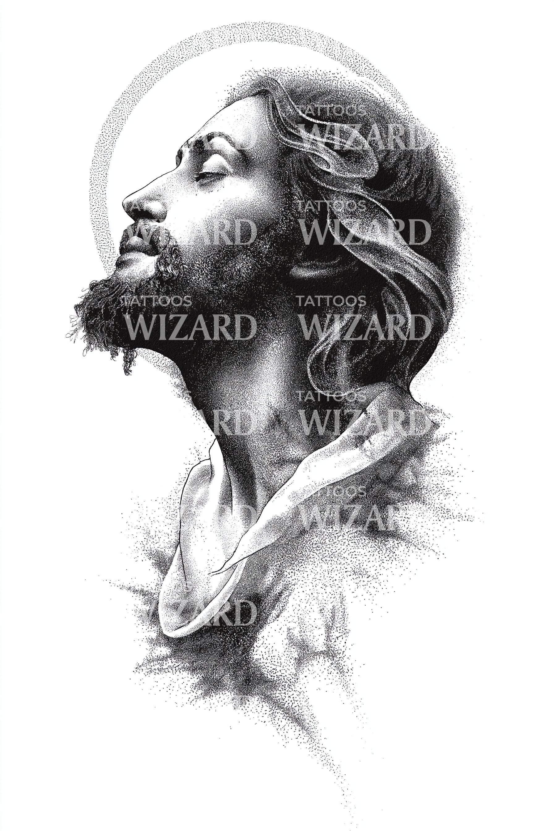 这款神圣的纹身设计以细腻的写实风格打造,散发出信仰与灵性的光辉。耶稣的肖像展现出深刻的神圣感,体现出神圣的恩典,将您的身体艺术提升到超凡的境界。非常适合希望将虔诚信仰铭刻于肌肤的信徒佩戴。