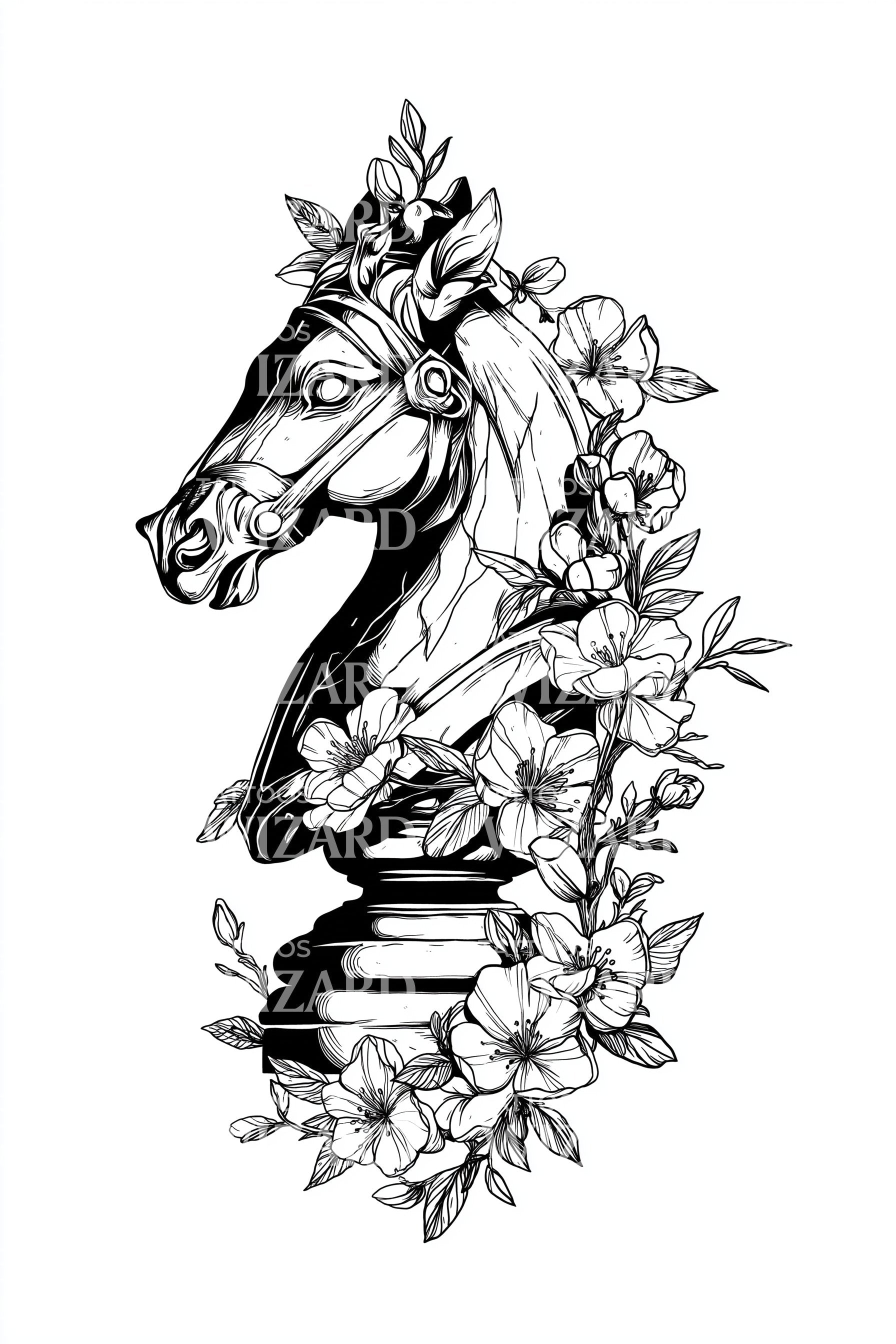 沉浸于中世纪的壮丽之中,这款经典的黑灰纹身设计巧妙地捕捉了一位高贵骑士的骏马奔腾的胸像,精致的花卉图案与之和谐交织。为欣赏历史与复杂设计融合的您精心呈现的艺术作品。