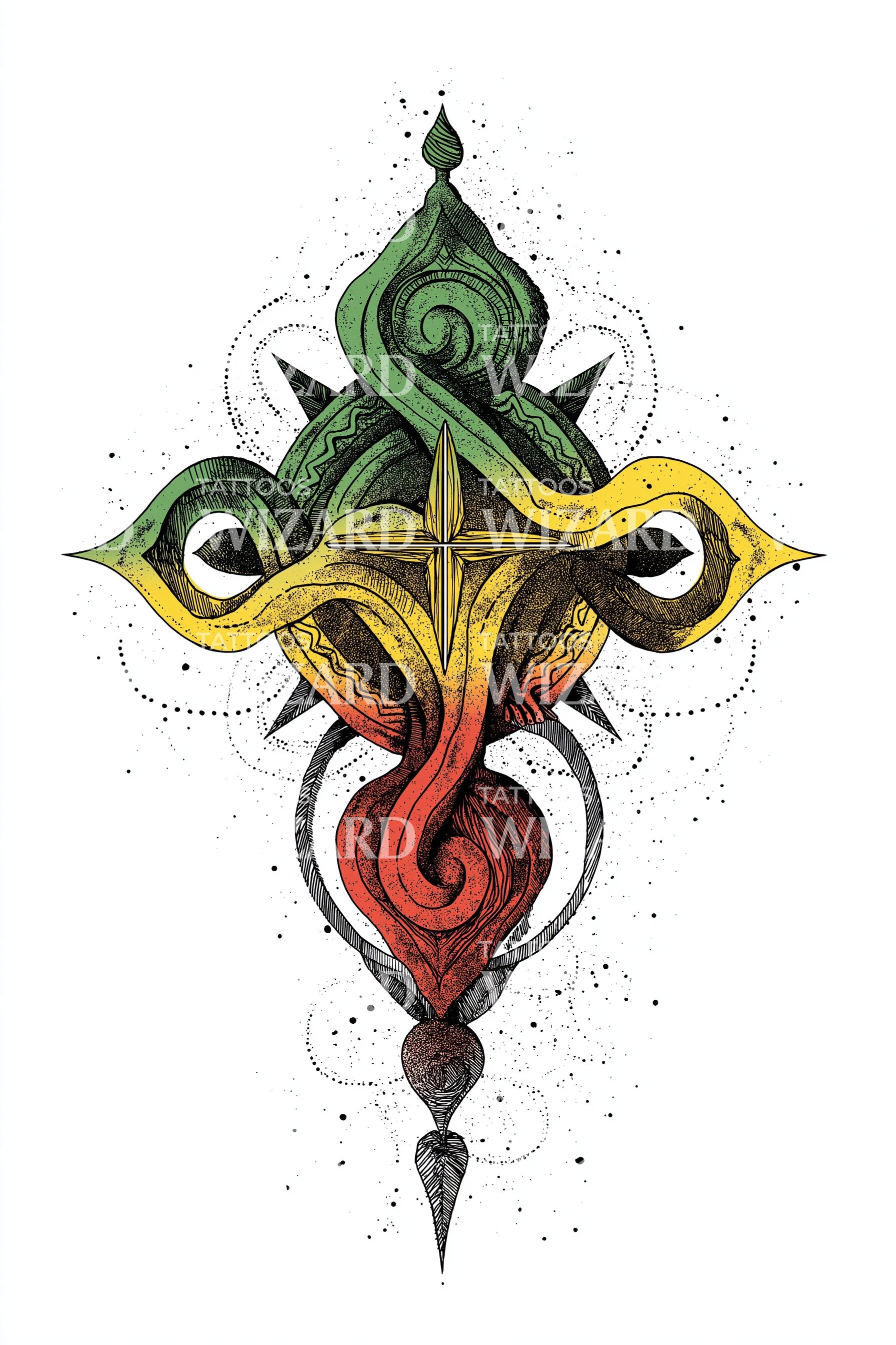用这款装饰性的泛非结纹身庆祝团结与力量。大胆的部落线条如非洲的传承之路交织,营造出节奏感的对称与永恒的装饰美。非常适合前臂、胸部或背部,既致敬根源,又保持现代与多样性——平衡、保护且充满力量的表达。扎根于文化与自豪感。