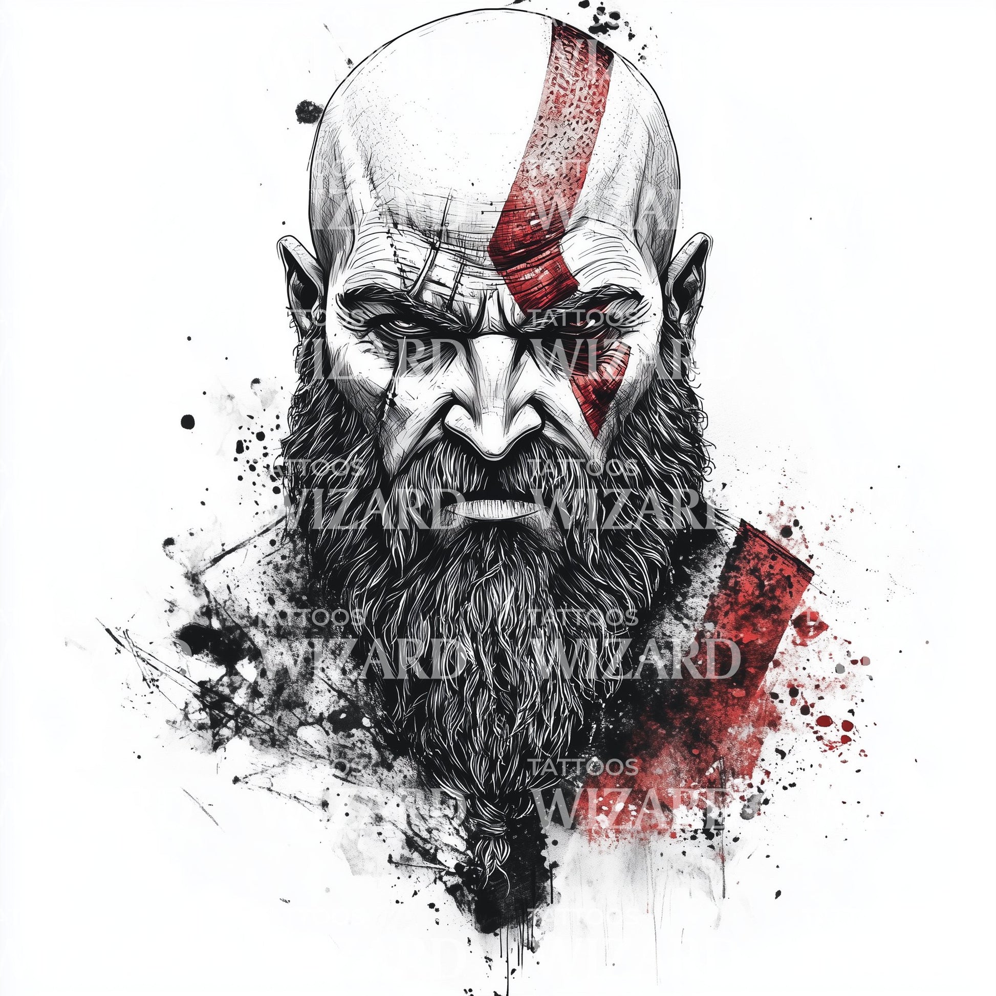 释放你内心的战士,选择我们的史诗克拉托斯纹身设计。灵感来源于《战神》视频游戏,这幅黑白杰作完美展现了克拉托斯,配有他传奇的胡须。无可否认地向他曾经打过的每一场史诗战斗致敬。象征着毅力、力量和勇气的标志。