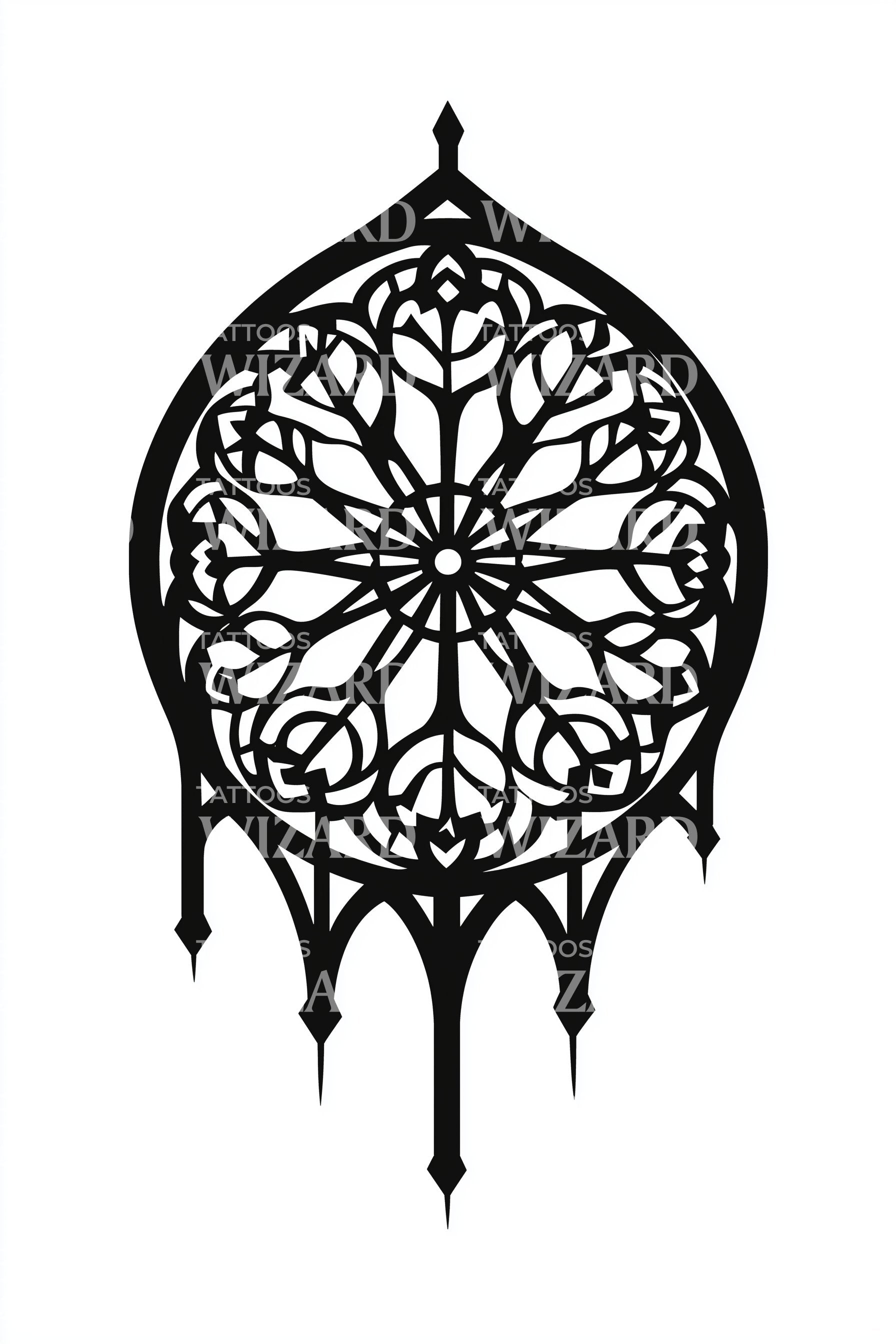 这款装饰性纹身设计完美地展现了大教堂令人惊叹的建筑风格。蕾丝般精致的图案宛如一扇细腻的窗户,俯瞰着尖塔,巧妙地打造出引人入胜的纹身。用这款空灵的设计,在你的肌肤上映射出彩色玻璃和装饰品的精美细节。