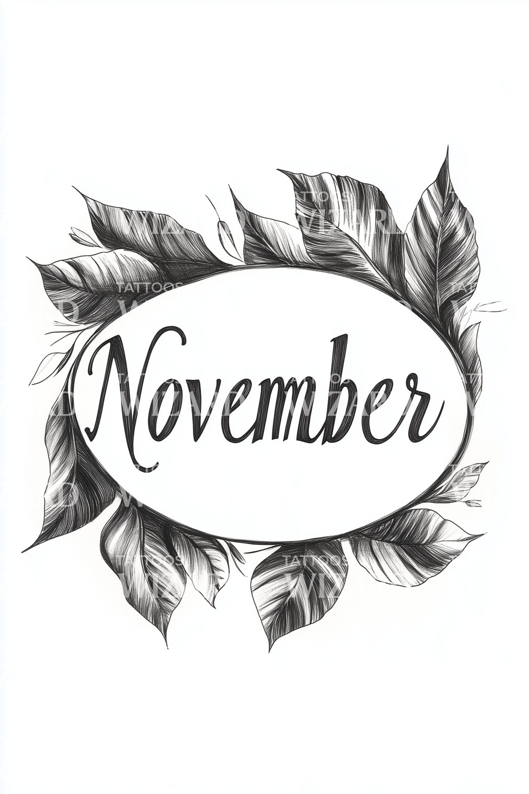 November Laurel Ring Script Tattoo Design