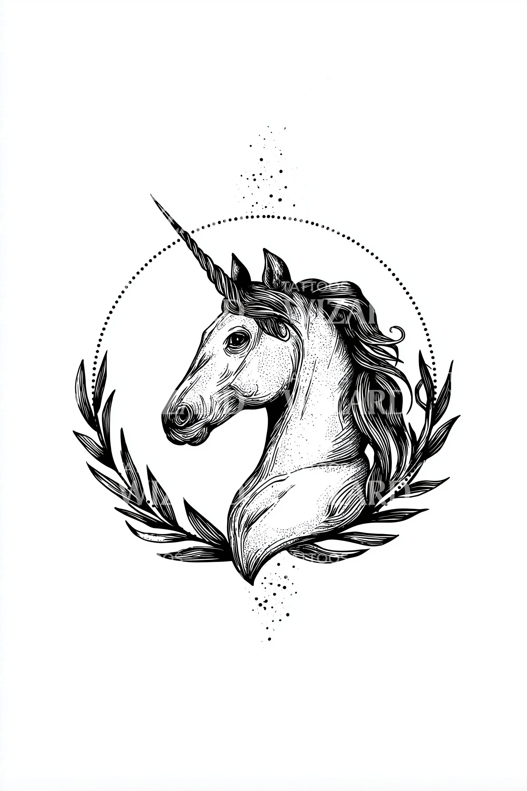 月桂花环独角兽纹身设计