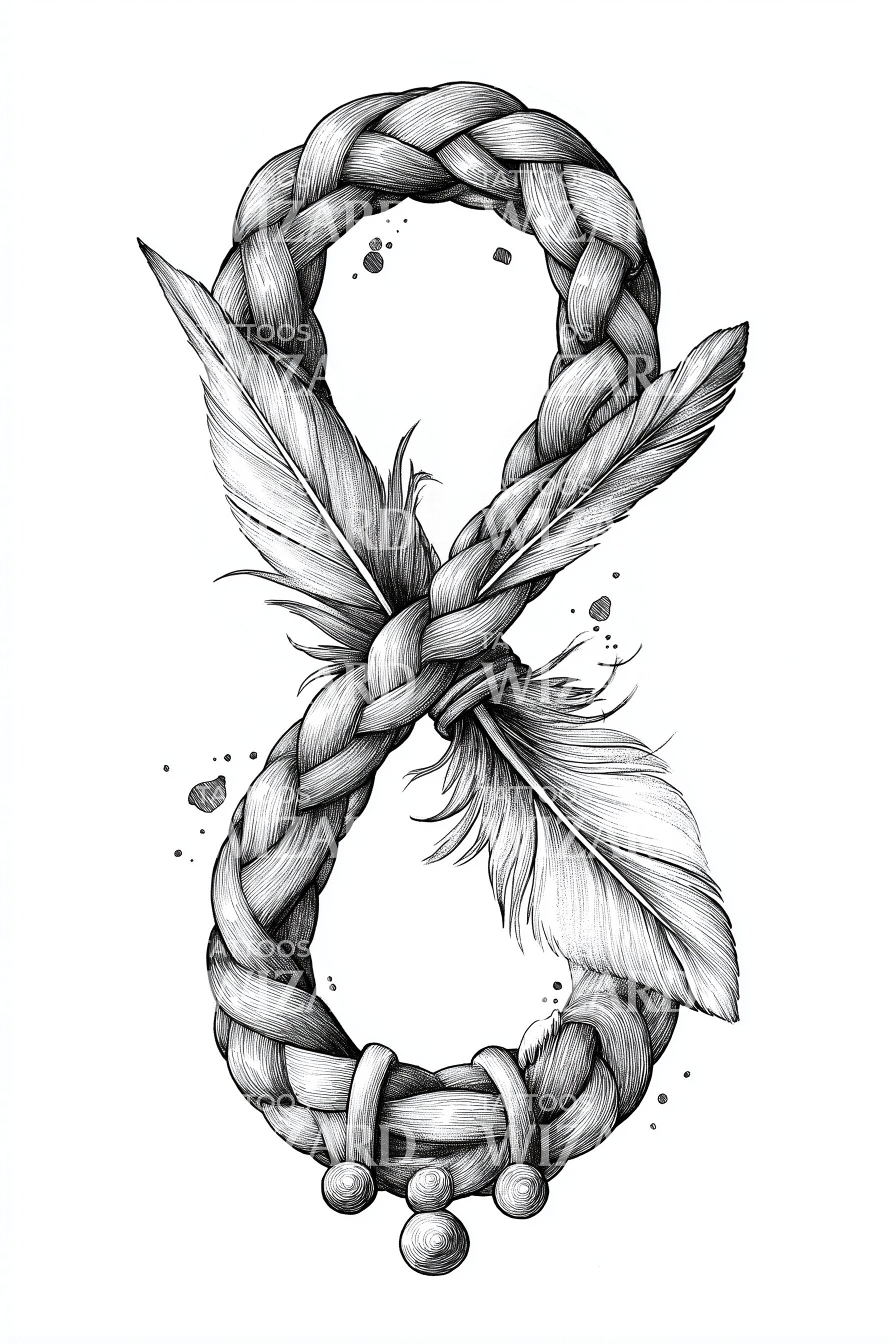 Braided into an elegant infinity loop, fine linework weaves soft strands with leaves and feather textures, luminous and precise. Symbolizes cycles unbroken, roots entwined with sky, the quiet marriage of nature and eternity. Wearing it feels grounded yet limitless, a steady breath of continuity, resilience, and ever-growing love.