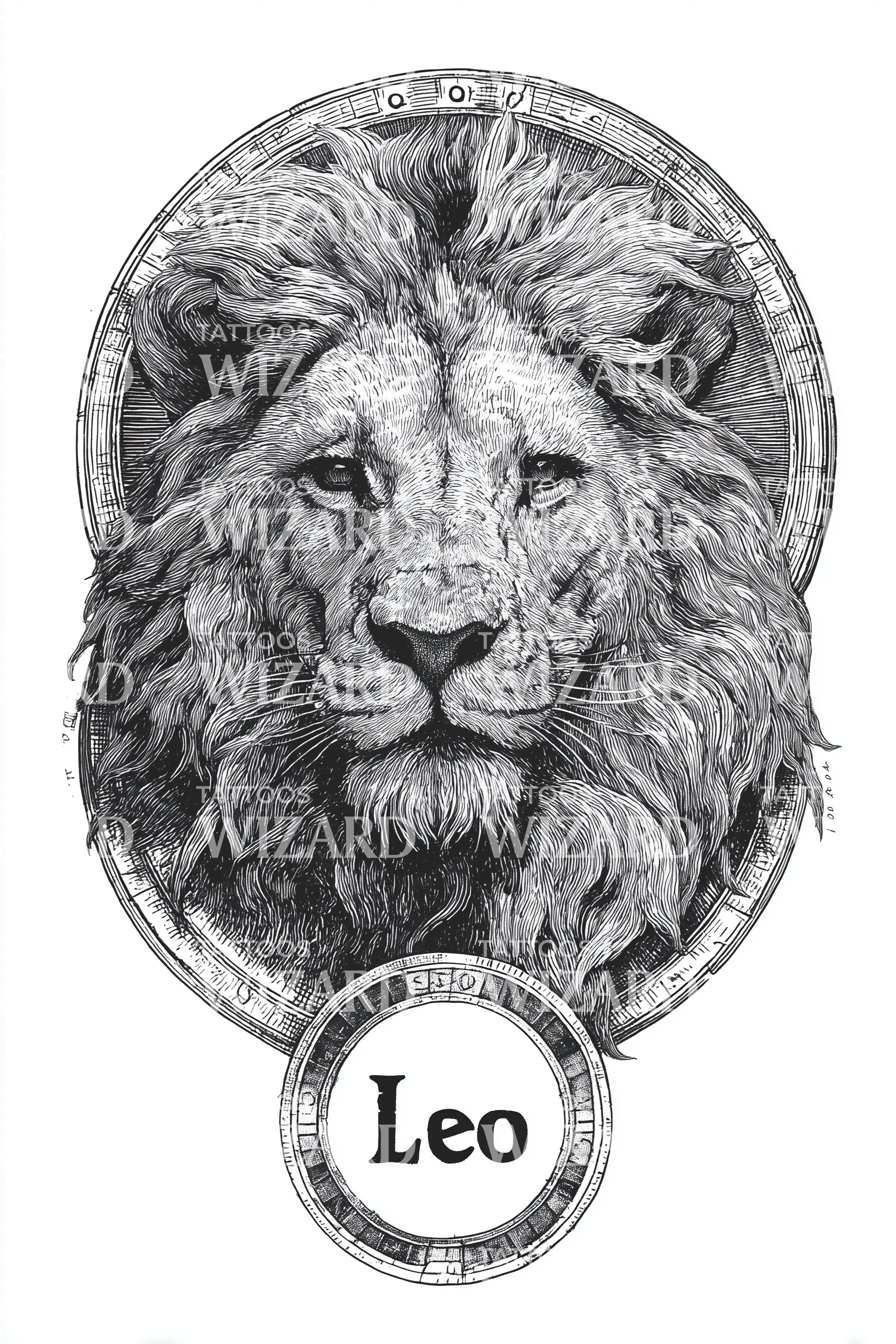 Regal Leo realism rendered in fine black ink: a lion’s wise gaze framed by celestial rings, mane flowing like quiet fire. Symbol of courage, sovereignty, and solar purpose, it honors the zodiac’s noble heart. Wearing it feels grounded, luminous, and unafraid, radiating unapologetic leadership with strength, warmth, pride.