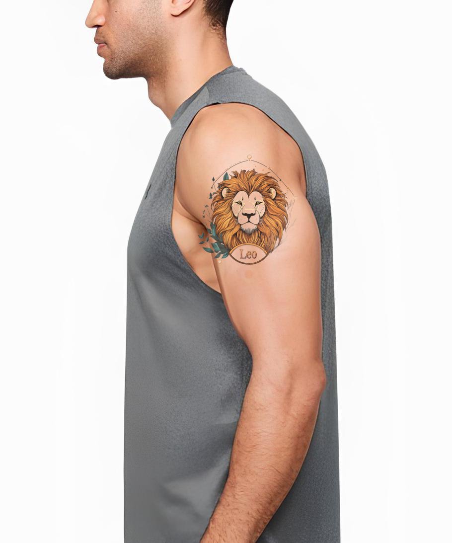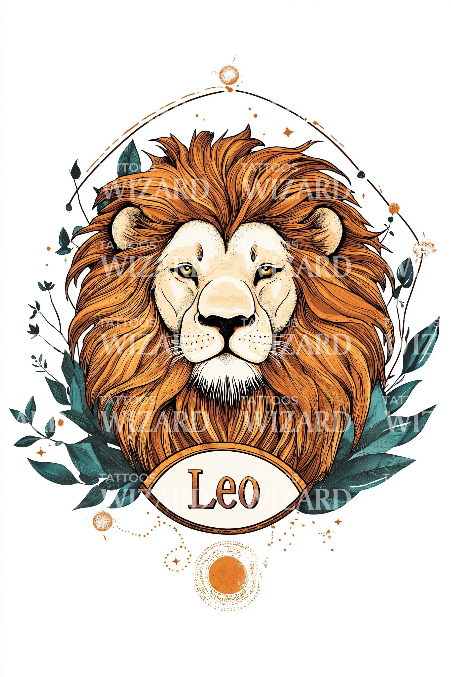 Leo Wreathed Lion Tattoo Illustration
