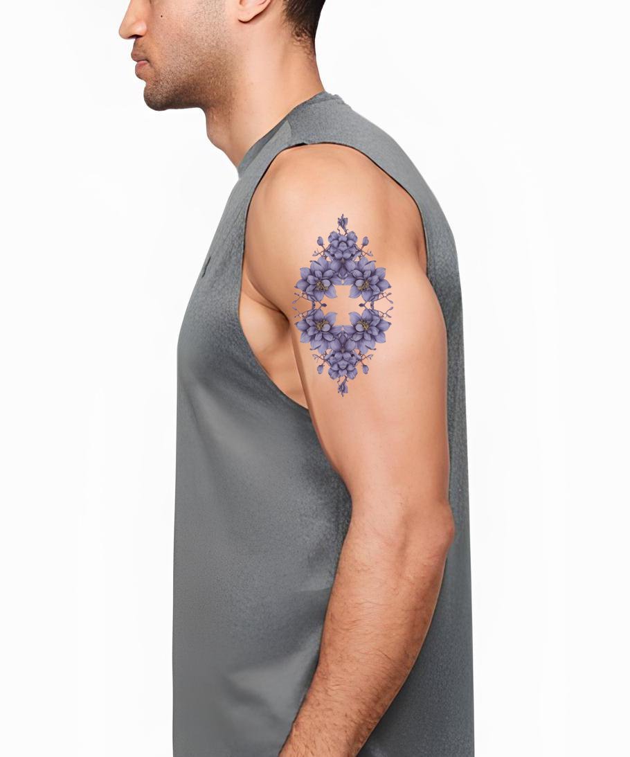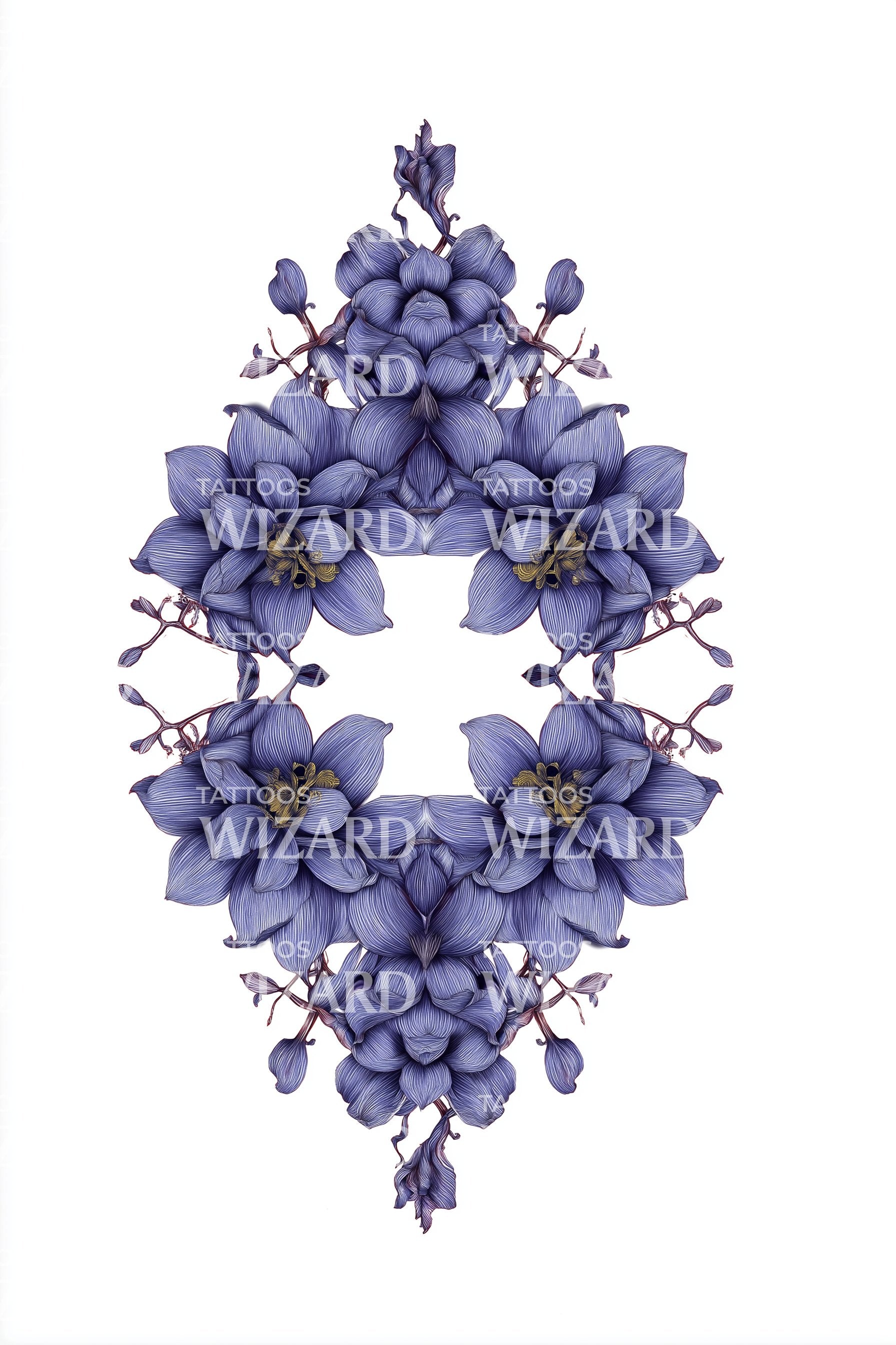 沉浸于这款丁香色曼陀罗纹身设计的宁静之中,其特点是复杂的对称结构和装饰性的风格。耀眼的宝石中心被精致的花卉图案优雅地环绕,展现出平衡与宁静的象征。非常适合追求富有灵性、时尚且永恒的身体艺术作品的您。