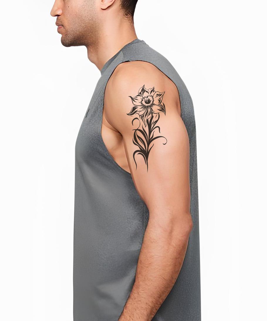 深入优雅的领域,这款华丽的纹身设计展现了装饰着庄严百合花的纹章。精致的卷轴花纹赋予作品一种纹章般的气息。通过其装饰性的美学,体验永恒力量与崇高精致的融合。是个人品味的完美象征。