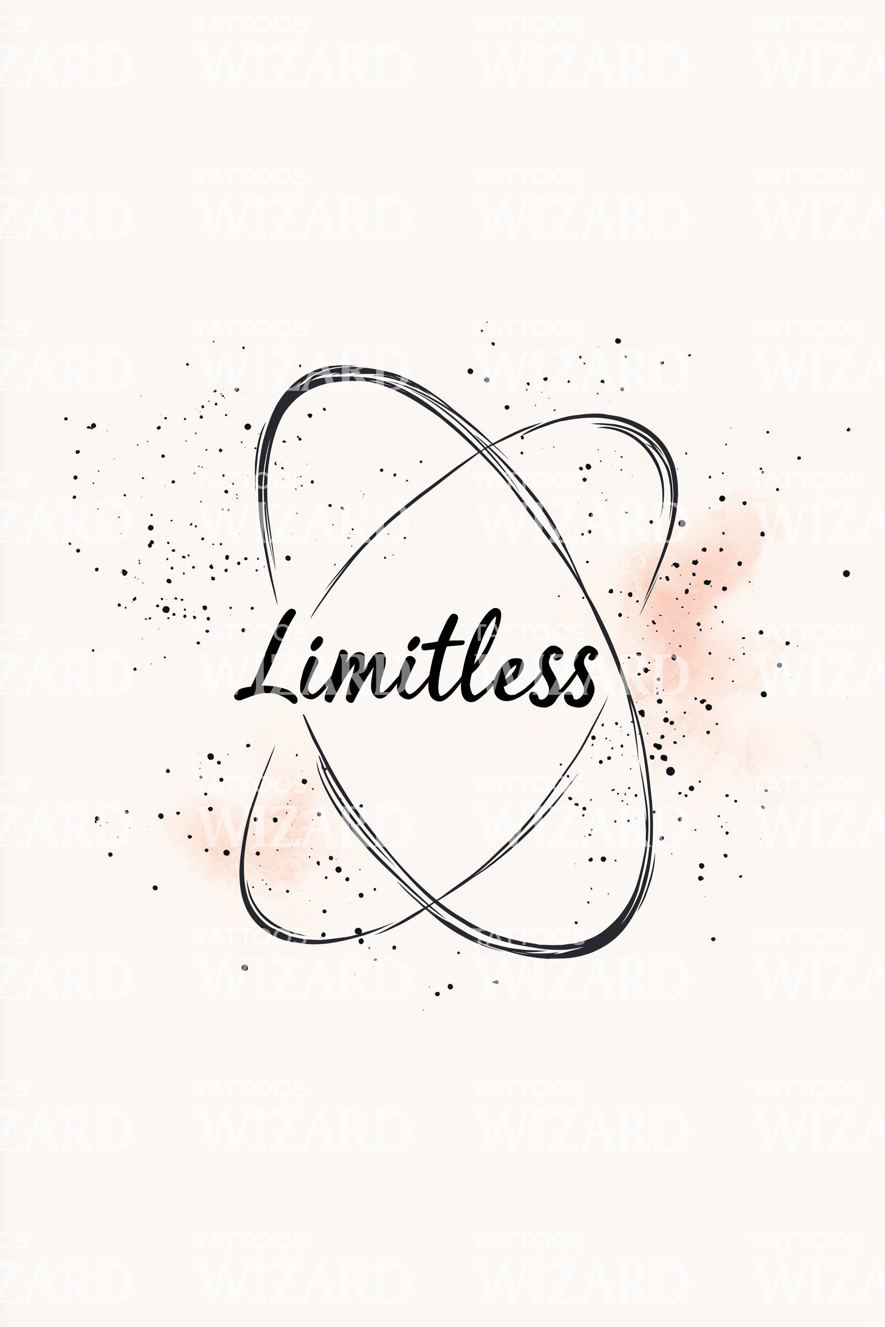 Limitless scripted at the core, encircled by sleek atom-like orbits and soft ink constellations. Minimal lines suggest motion and pure energy. Symbolizing expansion and possibility, every path curves toward growth. Worn on skin, it feels like quiet momentum, a daily reminder that boundaries dissolve into open, infinite space.
