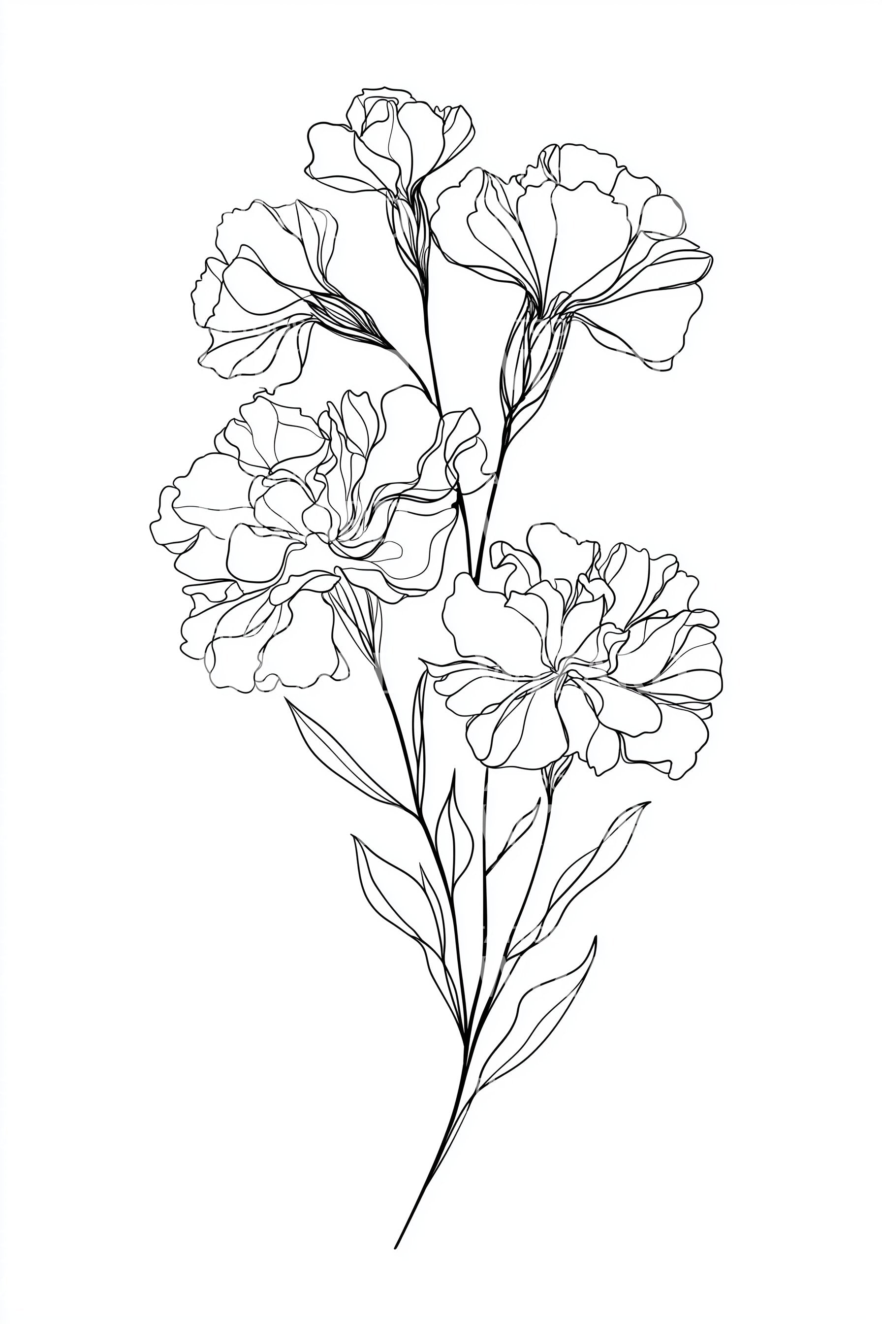 沉浸于大自然的优雅之中,感受我们细线条、极简风格的康乃馨纹身设计。这款简洁而惊艳的植物图案,将康乃馨的美丽转化为纯粹的线条。非常适合欣赏纹身艺术中细腻与高雅的你。